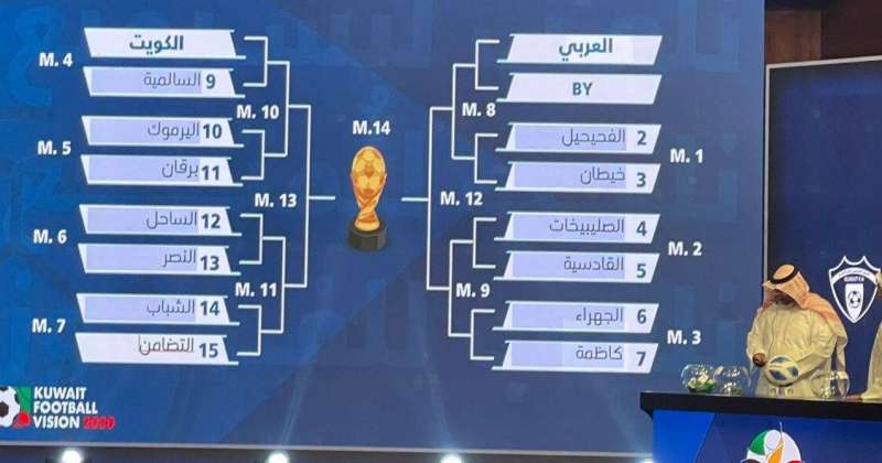 بينما تضم المجموعة الثانية الكويت والسالمية واليرموك والساحل وبرقان والنصر والشباب والتضامن.