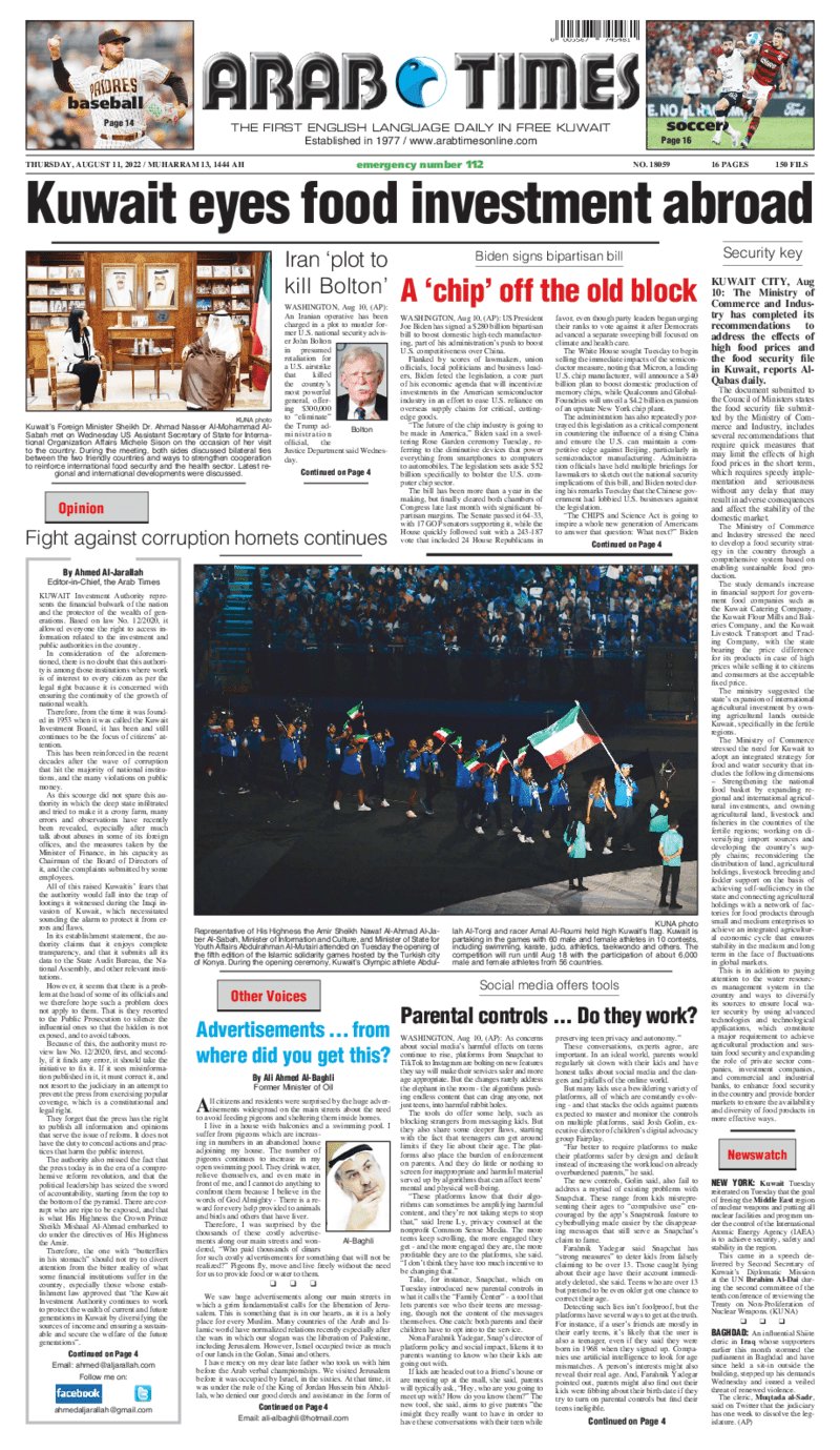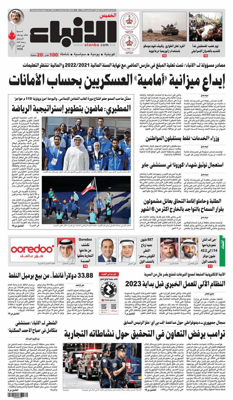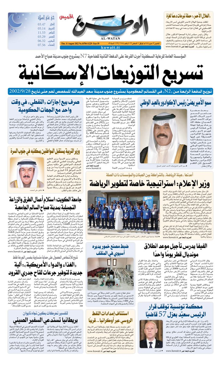 آخر الأخبار جرائم وقضايا “الجمارك” تضبط 29 ألف علبة مشروبات كحولية قادمة من دولة آسيوية في ميناء الشويخ 9 يونيو، 2024 محليات ممثلة عن دولة الكويت الطبيبة الكويتية أسماء الكندري تشارك في المؤتمر العالمي للمناظير في إيطاليا 8 يونيو، 2024 محليات “الصحة”: اكتمال وصول فريق الخدمات الطبية ببعثة الحج الكويتية لمكة المكرمة 8 يونيو، 2024 محليات “الصحة” تحدد 8 مراكز للصحة المدرسية لاستقبال الطلبة المبتعثين 8 يونيو، 2024 عربي وعالمي “الصحة العالمية”: تسجيل أول وفاة لشخص مصاب بـ«أنفلونزا الطيور» 7 يونيو، 2024 محليات عناوين الصحف الكويتية ليوم الخميس 11 أغسطس 2022 محرر المحليات11 أغسطس، 2022أضف تعليق1 دقائق جريدة الجريدة جريدة الأنباء جريدة القبس جريدة السياسة جريدة الوطن جريدة النهار جريدة الصباح جريدة عرب تايمز الوسومTop عناوين الصحف المحلية من الممكن أن يعجبك جرائم وقضايا “الجمارك” تضبط 29 ألف علبة مشروبات كحولية قادمة من دولة آسيوية في ميناء الشويخ محليات ممثلة عن دولة الكويت الطبيبة الكويتية أسماء الكندري تشارك في المؤتمر العالمي للمناظير في إيطاليا محليات “الصحة”: اكتمال وصول فريق الخدمات الطبية ببعثة الحج الكويتية لمكة المكرمة محليات “الصحة” تحدد 8 مراكز للصحة المدرسية لاستقبال الطلبة المبتعثين عربي وعالمي “الصحة العالمية”: تسجيل أول وفاة لشخص مصاب بـ«أنفلونزا الطيور» تكنولوجيا رش السحب بملح البحر.. تجربة “ثورية” لتبريد كوكب الأرض أضف تعليق أضغط هنا لإضافة تعليق إلغاء الردالتعليقالاسم البريد الإلكتروني الموقع الإلكتروني Δ هذا الموقع يستخدم خدمة أكيسميت للتقليل من البريد المزعجة. اعرف المزيد عن كيفية التعامل مع بيانات التعليقات الخاصة بك processed.