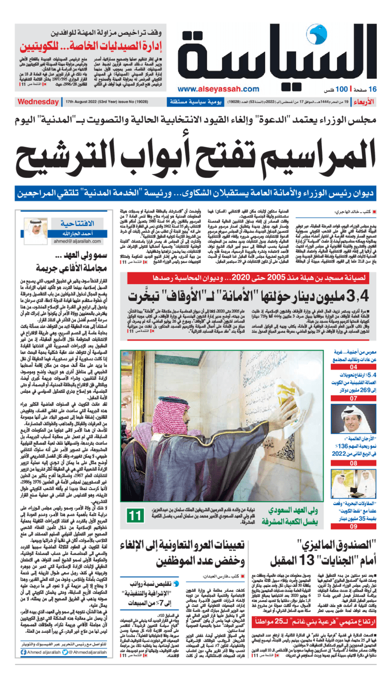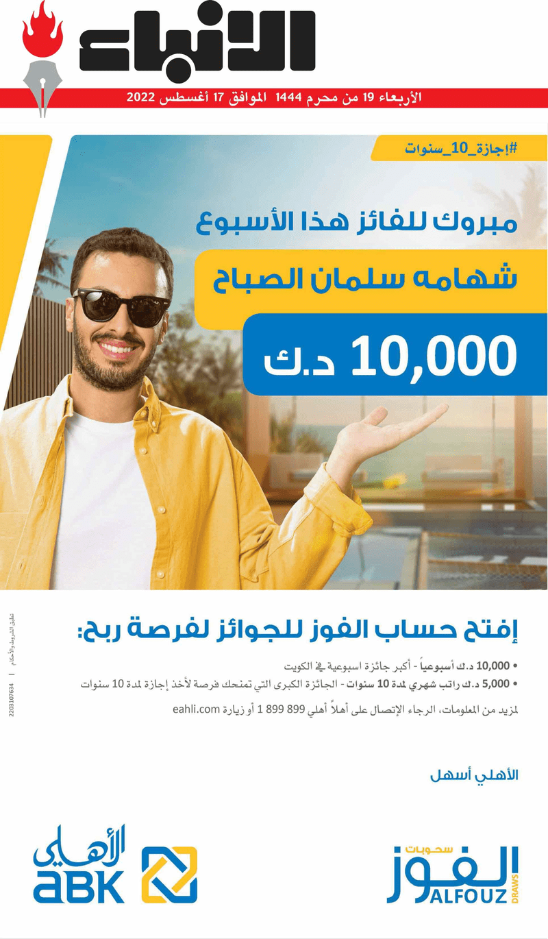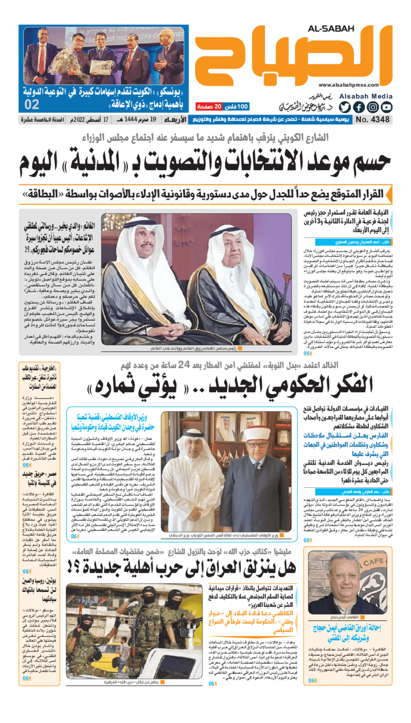 آخر الأخبار جرائم وقضايا “الجمارك” تضبط 29 ألف علبة مشروبات كحولية قادمة من دولة آسيوية في ميناء الشويخ 9 يونيو، 2024 محليات ممثلة عن دولة الكويت الطبيبة الكويتية أسماء الكندري تشارك في المؤتمر العالمي للمناظير في إيطاليا 8 يونيو، 2024 محليات “الصحة”: اكتمال وصول فريق الخدمات الطبية ببعثة الحج الكويتية لمكة المكرمة 8 يونيو، 2024 محليات “الصحة” تحدد 8 مراكز للصحة المدرسية لاستقبال الطلبة المبتعثين 8 يونيو، 2024 عربي وعالمي “الصحة العالمية”: تسجيل أول وفاة لشخص مصاب بـ«أنفلونزا الطيور» 7 يونيو، 2024 محليات عناوين الصحف الكويتية ليوم الأربعاء 17 أغسطس 2022 محرر المحليات17 أغسطس، 2022أضف تعليق1 دقائق جريدة الجريدة جريدة الأنباء جريدة القبس جريدة السياسة جريدة الوطن جريدة النهار جريدة الصباح جريدة عرب تايمز الوسومTop عناوين الصحف المحلية من الممكن أن يعجبك جرائم وقضايا “الجمارك” تضبط 29 ألف علبة مشروبات كحولية قادمة من دولة آسيوية في ميناء الشويخ محليات ممثلة عن دولة الكويت الطبيبة الكويتية أسماء الكندري تشارك في المؤتمر العالمي للمناظير في إيطاليا محليات “الصحة”: اكتمال وصول فريق الخدمات الطبية ببعثة الحج الكويتية لمكة المكرمة محليات “الصحة” تحدد 8 مراكز للصحة المدرسية لاستقبال الطلبة المبتعثين عربي وعالمي “الصحة العالمية”: تسجيل أول وفاة لشخص مصاب بـ«أنفلونزا الطيور» تكنولوجيا رش السحب بملح البحر.. تجربة “ثورية” لتبريد كوكب الأرض أضف تعليق أضغط هنا لإضافة تعليق إلغاء الردالتعليقالاسم البريد الإلكتروني الموقع الإلكتروني Δ هذا الموقع يستخدم خدمة أكيسميت للتقليل من البريد المزعجة. اعرف المزيد عن كيفية التعامل مع بيانات التعليقات الخاصة بك processed.