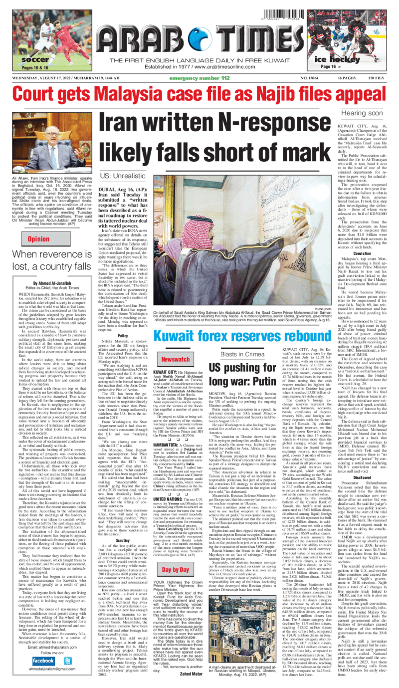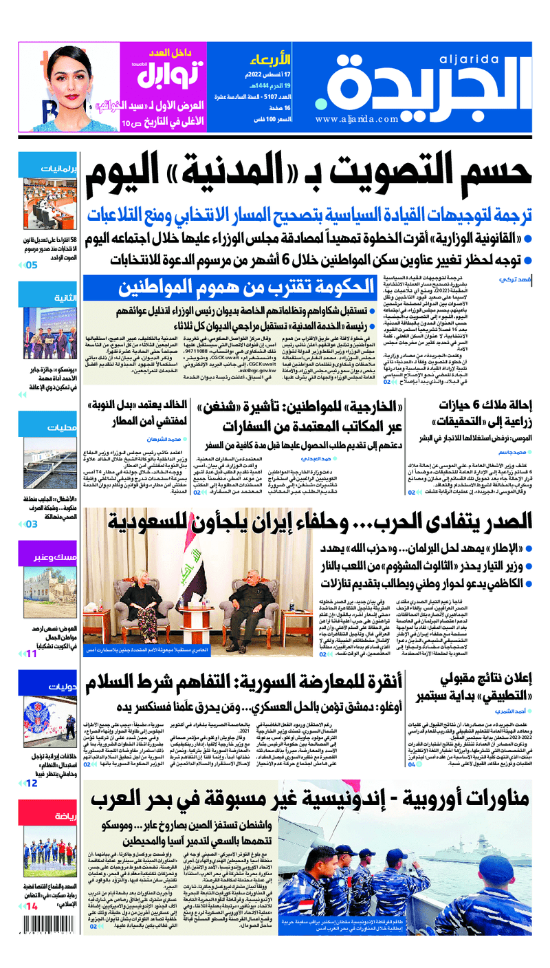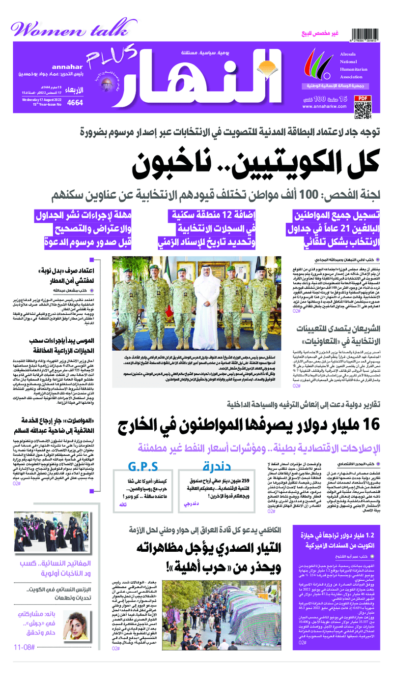 آخر الأخبار جرائم وقضايا “الجمارك” تضبط 29 ألف علبة مشروبات كحولية قادمة من دولة آسيوية في ميناء الشويخ 9 يونيو، 2024 محليات ممثلة عن دولة الكويت الطبيبة الكويتية أسماء الكندري تشارك في المؤتمر العالمي للمناظير في إيطاليا 8 يونيو، 2024 محليات “الصحة”: اكتمال وصول فريق الخدمات الطبية ببعثة الحج الكويتية لمكة المكرمة 8 يونيو، 2024 محليات “الصحة” تحدد 8 مراكز للصحة المدرسية لاستقبال الطلبة المبتعثين 8 يونيو، 2024 عربي وعالمي “الصحة العالمية”: تسجيل أول وفاة لشخص مصاب بـ«أنفلونزا الطيور» 7 يونيو، 2024 محليات عناوين الصحف الكويتية ليوم الأربعاء 17 أغسطس 2022 محرر المحليات17 أغسطس، 2022أضف تعليق1 دقائق جريدة الجريدة جريدة الأنباء جريدة القبس جريدة السياسة جريدة الوطن جريدة النهار جريدة الصباح جريدة عرب تايمز الوسومTop عناوين الصحف المحلية من الممكن أن يعجبك جرائم وقضايا “الجمارك” تضبط 29 ألف علبة مشروبات كحولية قادمة من دولة آسيوية في ميناء الشويخ محليات ممثلة عن دولة الكويت الطبيبة الكويتية أسماء الكندري تشارك في المؤتمر العالمي للمناظير في إيطاليا محليات “الصحة”: اكتمال وصول فريق الخدمات الطبية ببعثة الحج الكويتية لمكة المكرمة محليات “الصحة” تحدد 8 مراكز للصحة المدرسية لاستقبال الطلبة المبتعثين عربي وعالمي “الصحة العالمية”: تسجيل أول وفاة لشخص مصاب بـ«أنفلونزا الطيور» تكنولوجيا رش السحب بملح البحر.. تجربة “ثورية” لتبريد كوكب الأرض أضف تعليق أضغط هنا لإضافة تعليق إلغاء الردالتعليقالاسم البريد الإلكتروني الموقع الإلكتروني Δ هذا الموقع يستخدم خدمة أكيسميت للتقليل من البريد المزعجة. اعرف المزيد عن كيفية التعامل مع بيانات التعليقات الخاصة بك processed.