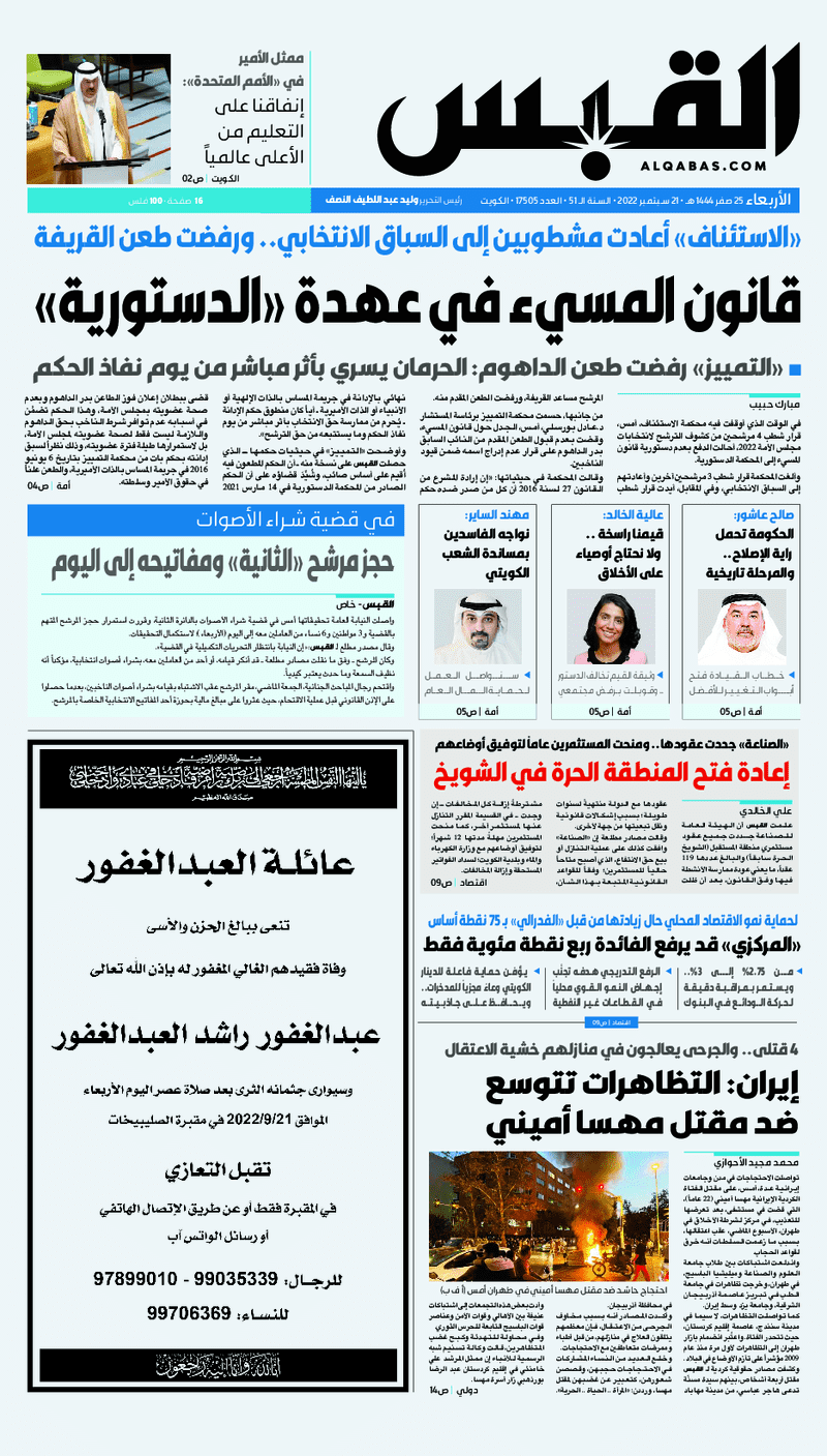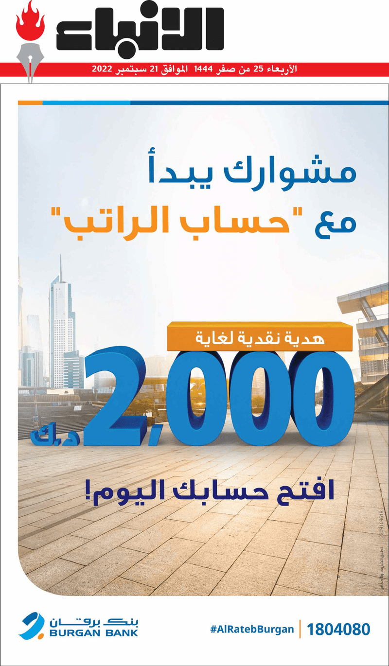 آخر الأخبار جرائم وقضايا “الجمارك” تضبط 29 ألف علبة مشروبات كحولية قادمة من دولة آسيوية في ميناء الشويخ 9 يونيو، 2024 محليات ممثلة عن دولة الكويت الطبيبة الكويتية أسماء الكندري تشارك في المؤتمر العالمي للمناظير في إيطاليا 8 يونيو، 2024 محليات “الصحة”: اكتمال وصول فريق الخدمات الطبية ببعثة الحج الكويتية لمكة المكرمة 8 يونيو، 2024 محليات “الصحة” تحدد 8 مراكز للصحة المدرسية لاستقبال الطلبة المبتعثين 8 يونيو، 2024 عربي وعالمي “الصحة العالمية”: تسجيل أول وفاة لشخص مصاب بـ«أنفلونزا الطيور» 7 يونيو، 2024 محليات عناوين الصحف الكويتية ليوم الأربعاء 21 سبتمبر 2022 محرر المحليات21 سبتمبر، 2022أضف تعليق1 دقائق جريدة الجريدة جريدة الأنباء جريدة القبس جريدة السياسة جريدة الوطن جريدة النهار جريدة الصباح جريدة عرب تايمز الوسومTop عناوين الصحف المحلية من الممكن أن يعجبك جرائم وقضايا “الجمارك” تضبط 29 ألف علبة مشروبات كحولية قادمة من دولة آسيوية في ميناء الشويخ محليات ممثلة عن دولة الكويت الطبيبة الكويتية أسماء الكندري تشارك في المؤتمر العالمي للمناظير في إيطاليا محليات “الصحة”: اكتمال وصول فريق الخدمات الطبية ببعثة الحج الكويتية لمكة المكرمة محليات “الصحة” تحدد 8 مراكز للصحة المدرسية لاستقبال الطلبة المبتعثين عربي وعالمي “الصحة العالمية”: تسجيل أول وفاة لشخص مصاب بـ«أنفلونزا الطيور» تكنولوجيا رش السحب بملح البحر.. تجربة “ثورية” لتبريد كوكب الأرض أضف تعليق أضغط هنا لإضافة تعليق إلغاء الردالتعليقالاسم البريد الإلكتروني الموقع الإلكتروني Δ هذا الموقع يستخدم خدمة أكيسميت للتقليل من البريد المزعجة. اعرف المزيد عن كيفية التعامل مع بيانات التعليقات الخاصة بك processed.