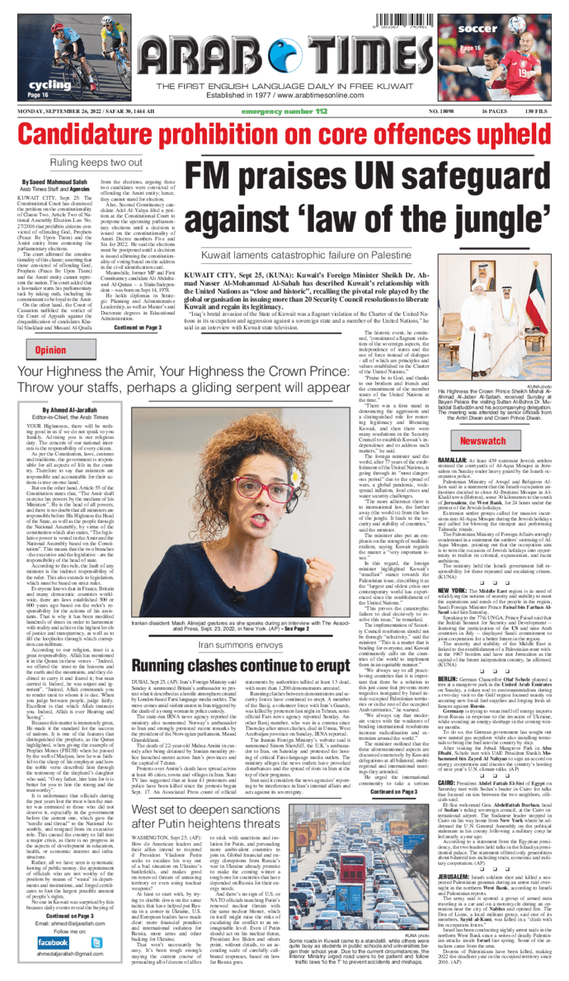 آخر الأخبار جرائم وقضايا “الجمارك” تضبط 29 ألف علبة مشروبات كحولية قادمة من دولة آسيوية في ميناء الشويخ 9 يونيو، 2024 محليات ممثلة عن دولة الكويت الطبيبة الكويتية أسماء الكندري تشارك في المؤتمر العالمي للمناظير في إيطاليا 8 يونيو، 2024 محليات “الصحة”: اكتمال وصول فريق الخدمات الطبية ببعثة الحج الكويتية لمكة المكرمة 8 يونيو، 2024 محليات “الصحة” تحدد 8 مراكز للصحة المدرسية لاستقبال الطلبة المبتعثين 8 يونيو، 2024 عربي وعالمي “الصحة العالمية”: تسجيل أول وفاة لشخص مصاب بـ«أنفلونزا الطيور» 7 يونيو، 2024 محليات عناوين الصحف الكويتية ليوم الاثنين 26 سبتمبر 2022 محرر المحليات26 سبتمبر، 2022أضف تعليق1 دقائق جريدة الجريدة جريدة الأنباء جريدة القبس جريدة السياسة جريدة الوطن جريدة النهار جريدة الصباح جريدة عرب تايمز الوسومTop عناوين الصحف المحلية من الممكن أن يعجبك جرائم وقضايا “الجمارك” تضبط 29 ألف علبة مشروبات كحولية قادمة من دولة آسيوية في ميناء الشويخ محليات ممثلة عن دولة الكويت الطبيبة الكويتية أسماء الكندري تشارك في المؤتمر العالمي للمناظير في إيطاليا محليات “الصحة”: اكتمال وصول فريق الخدمات الطبية ببعثة الحج الكويتية لمكة المكرمة محليات “الصحة” تحدد 8 مراكز للصحة المدرسية لاستقبال الطلبة المبتعثين عربي وعالمي “الصحة العالمية”: تسجيل أول وفاة لشخص مصاب بـ«أنفلونزا الطيور» تكنولوجيا رش السحب بملح البحر.. تجربة “ثورية” لتبريد كوكب الأرض أضف تعليق أضغط هنا لإضافة تعليق إلغاء الردالتعليقالاسم البريد الإلكتروني الموقع الإلكتروني Δ هذا الموقع يستخدم خدمة أكيسميت للتقليل من البريد المزعجة. اعرف المزيد عن كيفية التعامل مع بيانات التعليقات الخاصة بك processed.