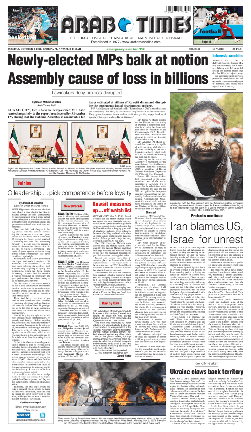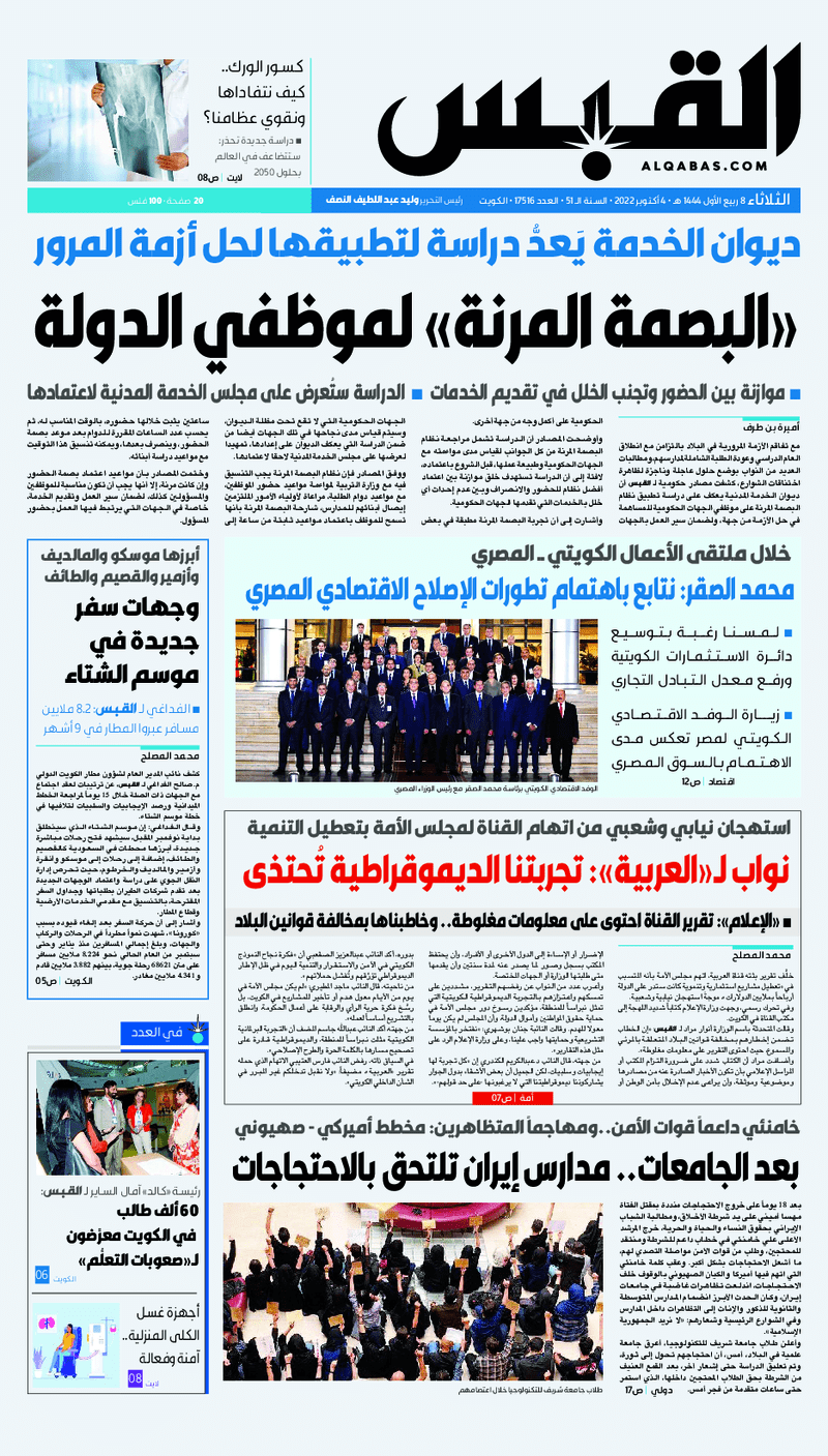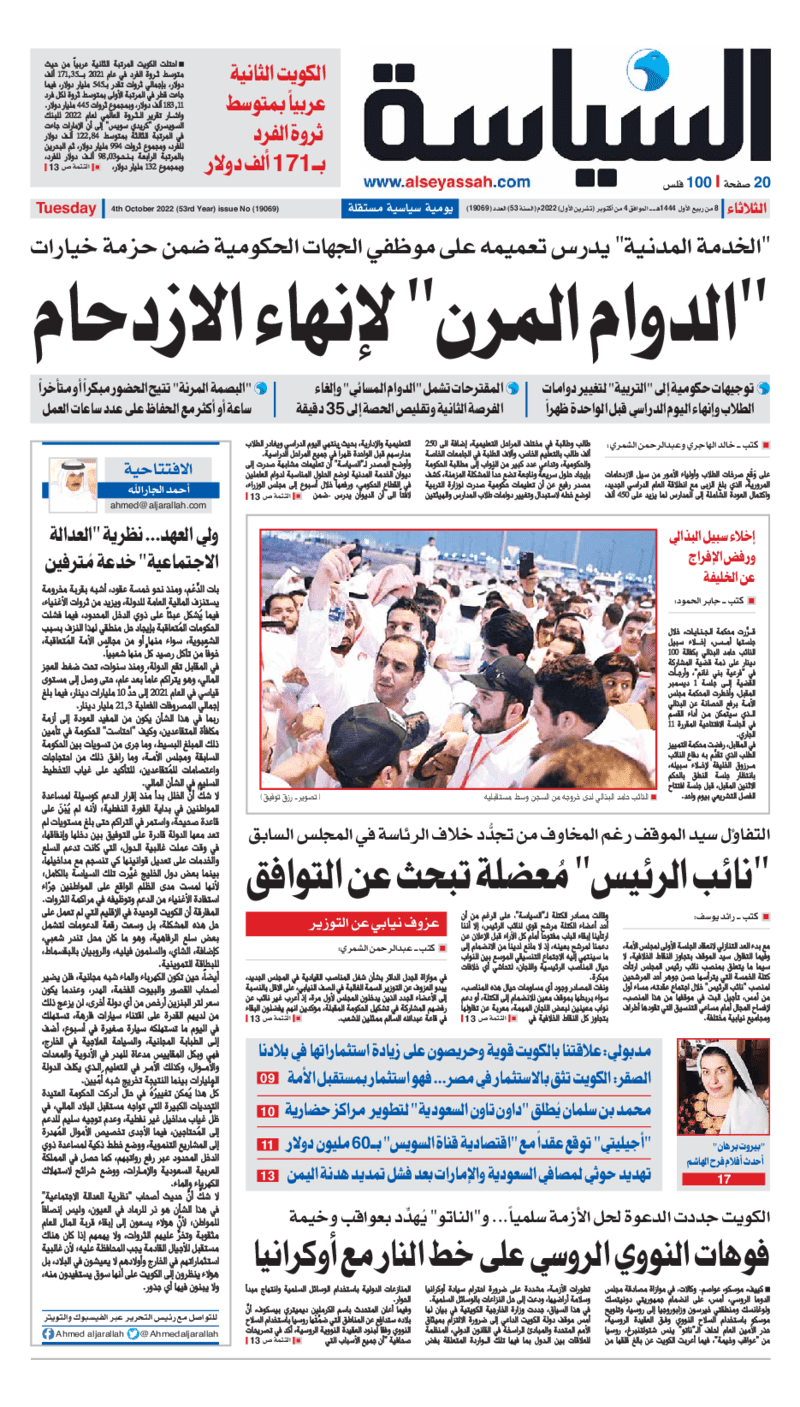 آخر الأخبار جرائم وقضايا “الجمارك” تضبط 29 ألف علبة مشروبات كحولية قادمة من دولة آسيوية في ميناء الشويخ 9 يونيو، 2024 محليات ممثلة عن دولة الكويت الطبيبة الكويتية أسماء الكندري تشارك في المؤتمر العالمي للمناظير في إيطاليا 8 يونيو، 2024 محليات “الصحة”: اكتمال وصول فريق الخدمات الطبية ببعثة الحج الكويتية لمكة المكرمة 8 يونيو، 2024 محليات “الصحة” تحدد 8 مراكز للصحة المدرسية لاستقبال الطلبة المبتعثين 8 يونيو، 2024 عربي وعالمي “الصحة العالمية”: تسجيل أول وفاة لشخص مصاب بـ«أنفلونزا الطيور» 7 يونيو، 2024 محليات عناوين الصحف الكويتية ليوم الثلاثاء 04 أكتوبر 2022 محرر المحليات4 أكتوبر، 2022أضف تعليق1 دقائق جريدة الجريدة جريدة الأنباء جريدة القبس جريدة السياسة جريدة الوطن جريدة النهار جريدة الصباح جريدة عرب تايمز الوسومTop عناوين الصحف المحلية من الممكن أن يعجبك جرائم وقضايا “الجمارك” تضبط 29 ألف علبة مشروبات كحولية قادمة من دولة آسيوية في ميناء الشويخ محليات ممثلة عن دولة الكويت الطبيبة الكويتية أسماء الكندري تشارك في المؤتمر العالمي للمناظير في إيطاليا محليات “الصحة”: اكتمال وصول فريق الخدمات الطبية ببعثة الحج الكويتية لمكة المكرمة محليات “الصحة” تحدد 8 مراكز للصحة المدرسية لاستقبال الطلبة المبتعثين عربي وعالمي “الصحة العالمية”: تسجيل أول وفاة لشخص مصاب بـ«أنفلونزا الطيور» تكنولوجيا رش السحب بملح البحر.. تجربة “ثورية” لتبريد كوكب الأرض أضف تعليق أضغط هنا لإضافة تعليق إلغاء الردالتعليقالاسم البريد الإلكتروني الموقع الإلكتروني Δ هذا الموقع يستخدم خدمة أكيسميت للتقليل من البريد المزعجة. اعرف المزيد عن كيفية التعامل مع بيانات التعليقات الخاصة بك processed.