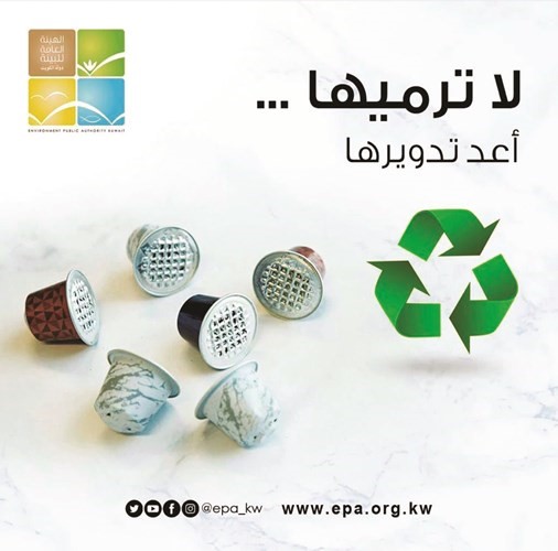 وذكرت «البيئة» في تغريدة عبر حسابها الرسمي في «تويتر» إن «أكثر من 55 مليون كبسولة قهوة ترمى يومياً. والمواد المتعددة للملمعات التي تتكون منها الكبسولات البلاستيكية الأكثر انتشاراً تجعلها من النفايات التي يصعب إدارتها وإعادة تدوريها»، مضيفة «يمكنكم اعادة تدوير كبسولات القهوه في الحاويات المتوفرة لدينا».