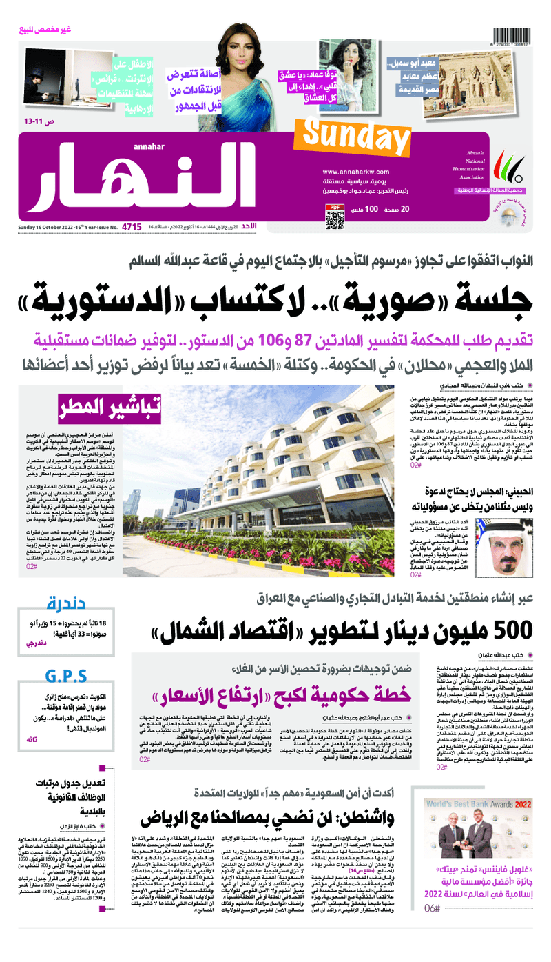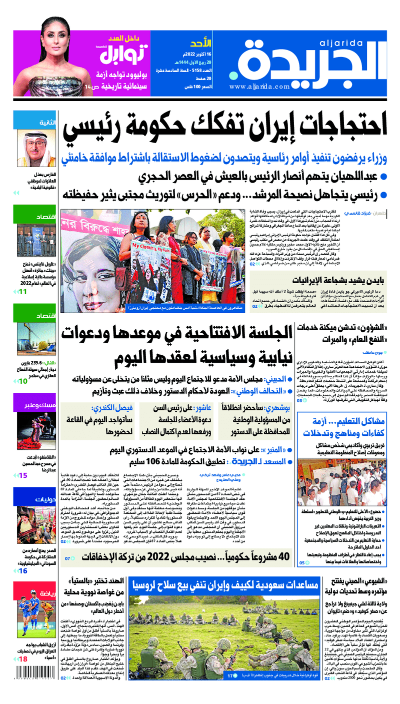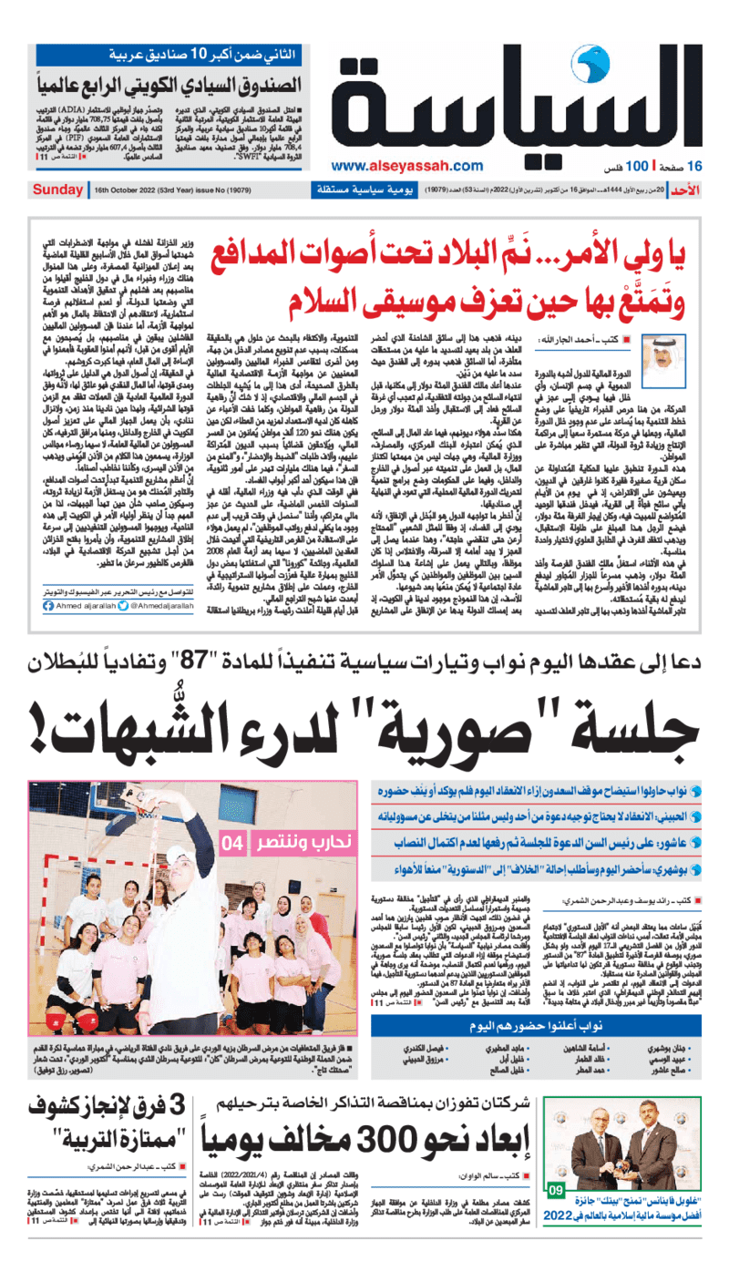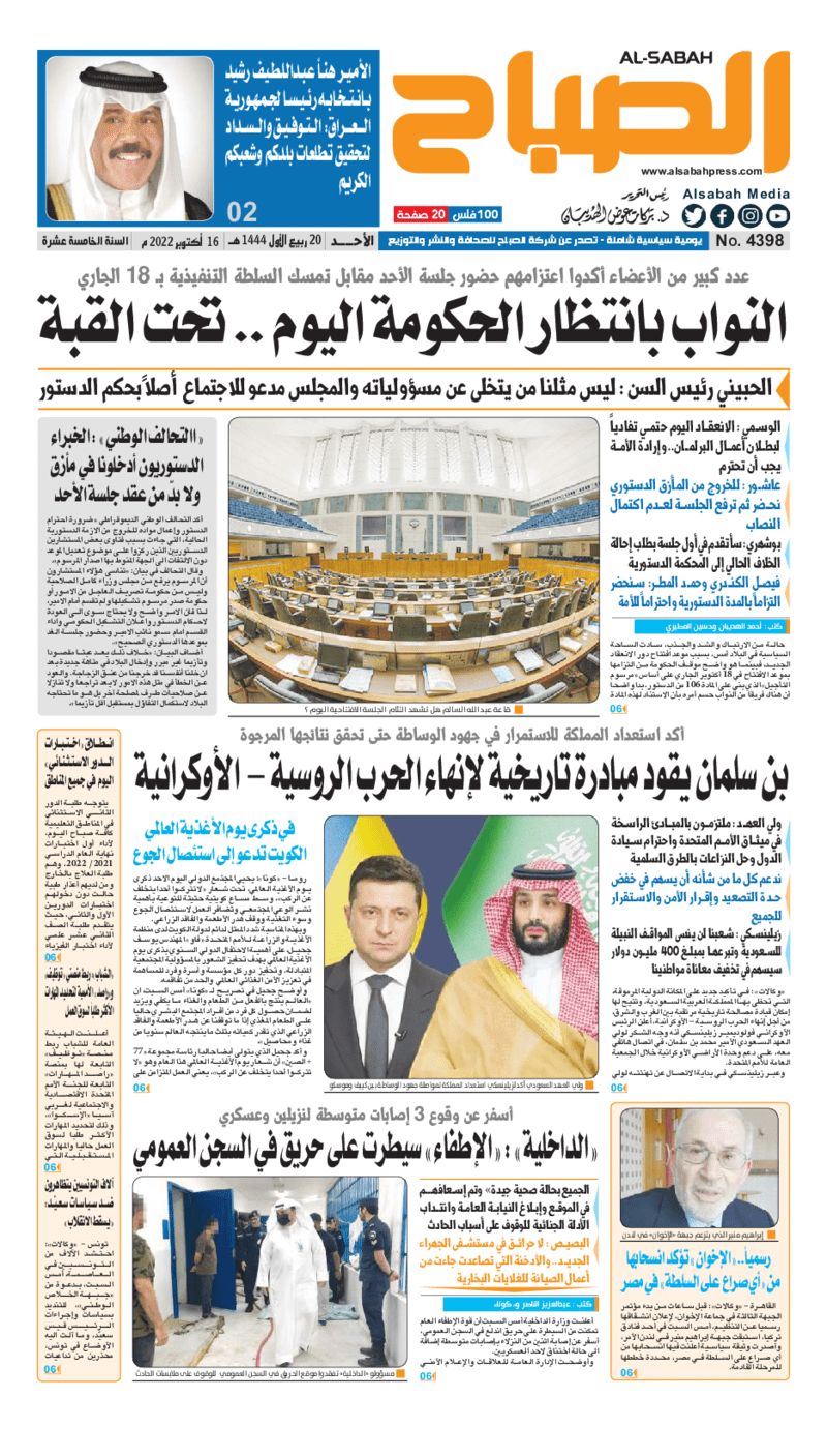 آخر الأخبار جرائم وقضايا “الجمارك” تضبط 29 ألف علبة مشروبات كحولية قادمة من دولة آسيوية في ميناء الشويخ 9 يونيو، 2024 محليات ممثلة عن دولة الكويت الطبيبة الكويتية أسماء الكندري تشارك في المؤتمر العالمي للمناظير في إيطاليا 8 يونيو، 2024 محليات “الصحة”: اكتمال وصول فريق الخدمات الطبية ببعثة الحج الكويتية لمكة المكرمة 8 يونيو، 2024 محليات “الصحة” تحدد 8 مراكز للصحة المدرسية لاستقبال الطلبة المبتعثين 8 يونيو، 2024 عربي وعالمي “الصحة العالمية”: تسجيل أول وفاة لشخص مصاب بـ«أنفلونزا الطيور» 7 يونيو، 2024 محليات عناوين الصحف الكويتية ليوم الأحد 16 أكتوبر 2022 محرر المحليات16 أكتوبر، 2022أضف تعليق1 دقائق جريدة الجريدة جريدة الأنباء جريدة القبس جريدة السياسة جريدة الوطن جريدة النهار جريدة الصباح جريدة عرب تايمز الوسومTop عناوين الصحف المحلية من الممكن أن يعجبك جرائم وقضايا “الجمارك” تضبط 29 ألف علبة مشروبات كحولية قادمة من دولة آسيوية في ميناء الشويخ محليات ممثلة عن دولة الكويت الطبيبة الكويتية أسماء الكندري تشارك في المؤتمر العالمي للمناظير في إيطاليا محليات “الصحة”: اكتمال وصول فريق الخدمات الطبية ببعثة الحج الكويتية لمكة المكرمة محليات “الصحة” تحدد 8 مراكز للصحة المدرسية لاستقبال الطلبة المبتعثين عربي وعالمي “الصحة العالمية”: تسجيل أول وفاة لشخص مصاب بـ«أنفلونزا الطيور» تكنولوجيا رش السحب بملح البحر.. تجربة “ثورية” لتبريد كوكب الأرض أضف تعليق أضغط هنا لإضافة تعليق إلغاء الردالتعليقالاسم البريد الإلكتروني الموقع الإلكتروني Δ هذا الموقع يستخدم خدمة أكيسميت للتقليل من البريد المزعجة. اعرف المزيد عن كيفية التعامل مع بيانات التعليقات الخاصة بك processed.
