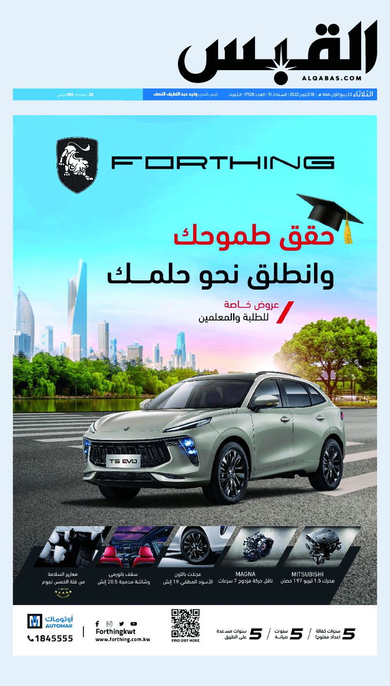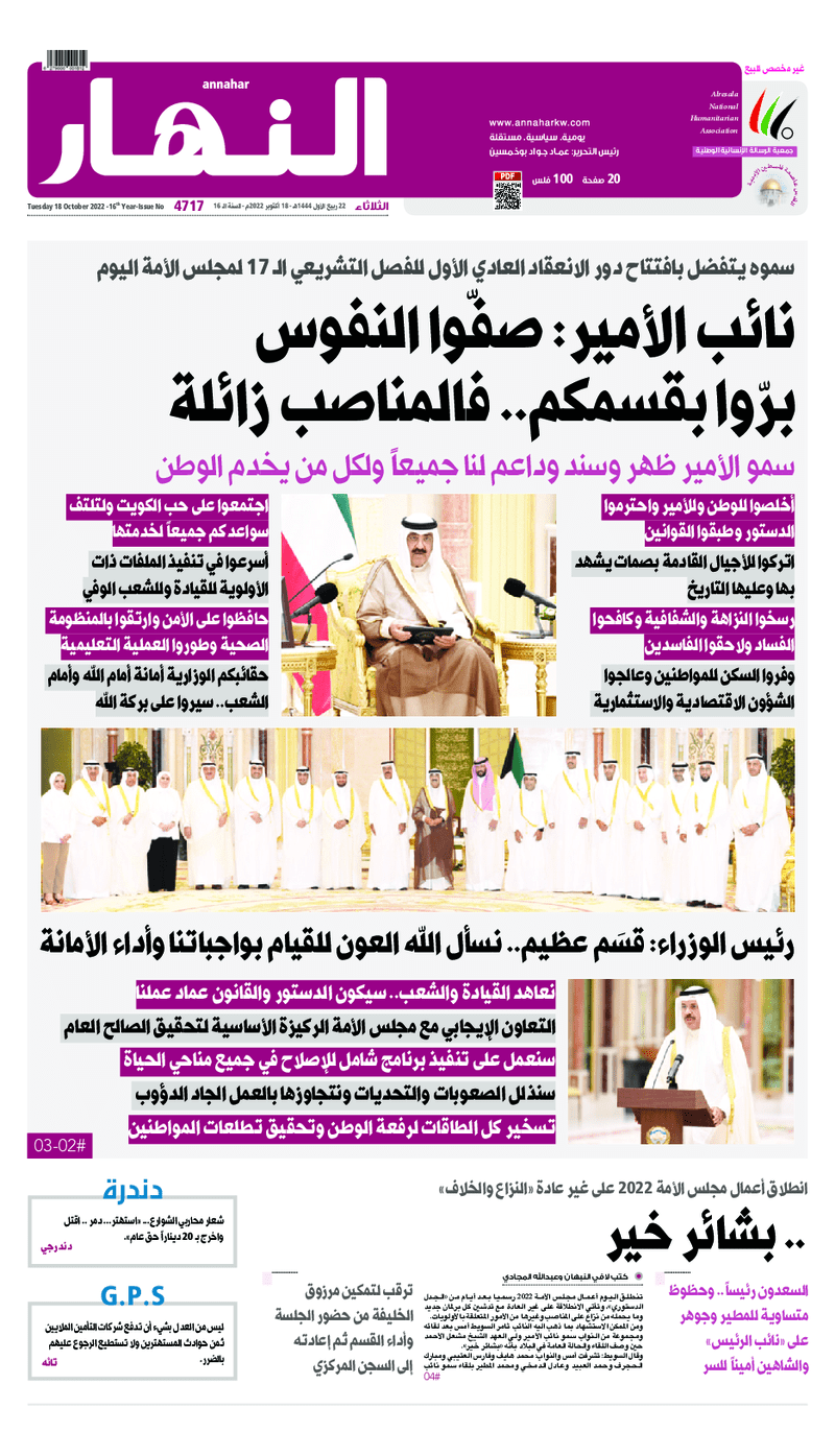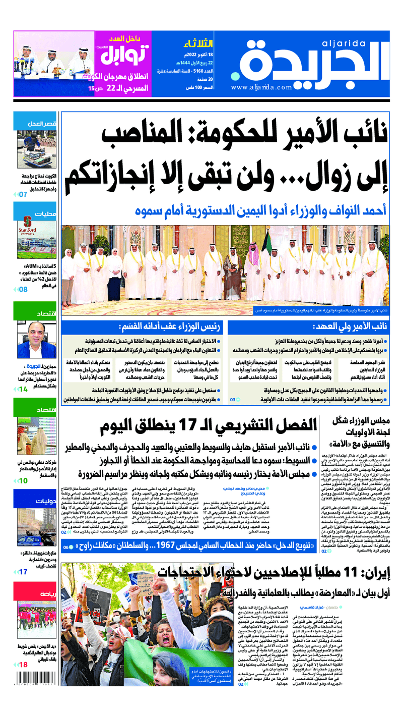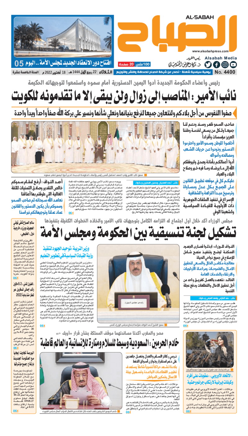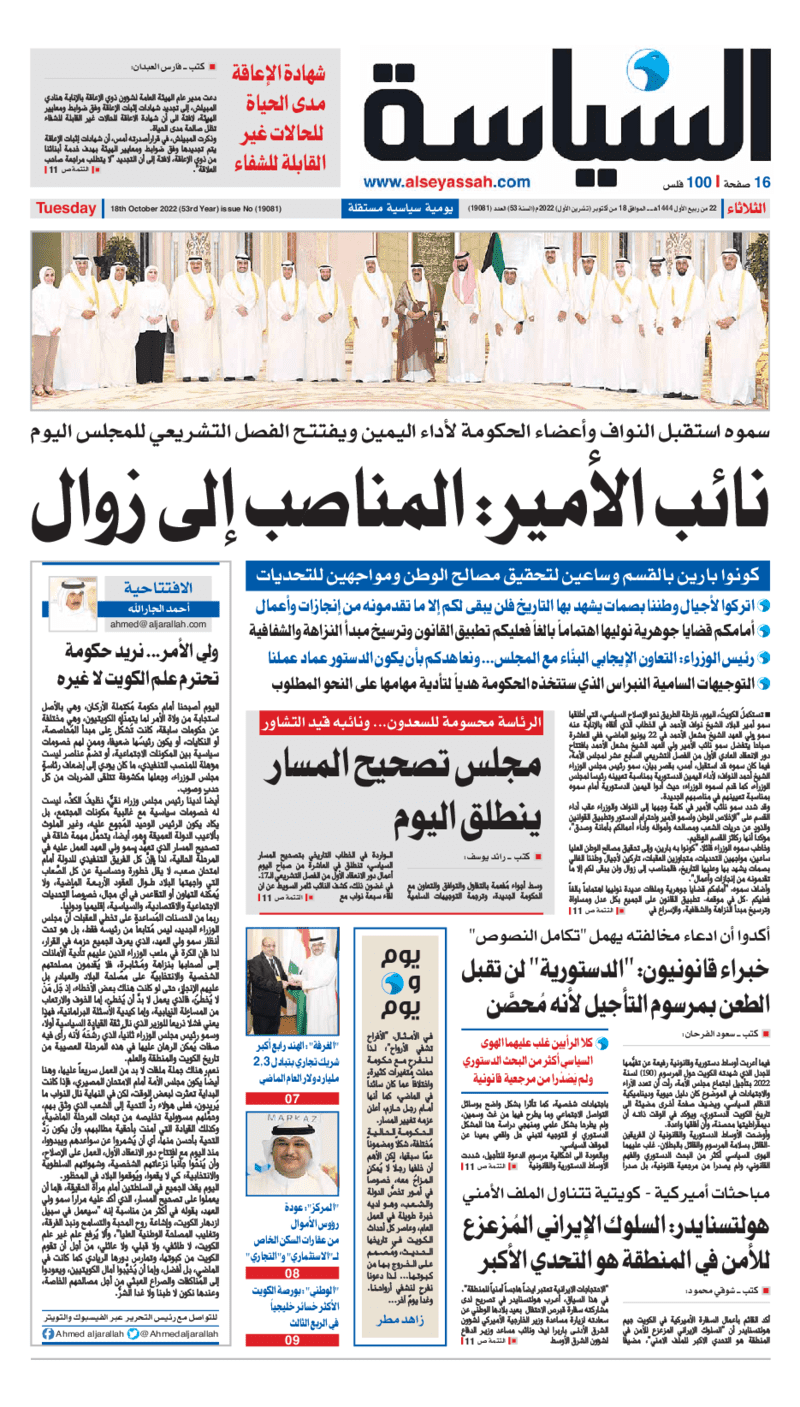 آخر الأخبار جرائم وقضايا “الجمارك” تضبط 29 ألف علبة مشروبات كحولية قادمة من دولة آسيوية في ميناء الشويخ 9 يونيو، 2024 محليات ممثلة عن دولة الكويت الطبيبة الكويتية أسماء الكندري تشارك في المؤتمر العالمي للمناظير في إيطاليا 8 يونيو، 2024 محليات “الصحة”: اكتمال وصول فريق الخدمات الطبية ببعثة الحج الكويتية لمكة المكرمة 8 يونيو، 2024 محليات “الصحة” تحدد 8 مراكز للصحة المدرسية لاستقبال الطلبة المبتعثين 8 يونيو، 2024 عربي وعالمي “الصحة العالمية”: تسجيل أول وفاة لشخص مصاب بـ«أنفلونزا الطيور» 7 يونيو، 2024 محليات عناوين الصحف الكويتية ليوم الثلاثاء 18 أكتوبر 2022 محرر المحليات18 أكتوبر، 2022أضف تعليق1 دقائق جريدة الجريدة جريدة الأنباء جريدة القبس جريدة السياسة جريدة الوطن جريدة النهار جريدة الصباح جريدة عرب تايمز الوسومTop عناوين الصحف المحلية من الممكن أن يعجبك جرائم وقضايا “الجمارك” تضبط 29 ألف علبة مشروبات كحولية قادمة من دولة آسيوية في ميناء الشويخ محليات ممثلة عن دولة الكويت الطبيبة الكويتية أسماء الكندري تشارك في المؤتمر العالمي للمناظير في إيطاليا محليات “الصحة”: اكتمال وصول فريق الخدمات الطبية ببعثة الحج الكويتية لمكة المكرمة محليات “الصحة” تحدد 8 مراكز للصحة المدرسية لاستقبال الطلبة المبتعثين عربي وعالمي “الصحة العالمية”: تسجيل أول وفاة لشخص مصاب بـ«أنفلونزا الطيور» تكنولوجيا رش السحب بملح البحر.. تجربة “ثورية” لتبريد كوكب الأرض أضف تعليق أضغط هنا لإضافة تعليق إلغاء الردالتعليقالاسم البريد الإلكتروني الموقع الإلكتروني Δ هذا الموقع يستخدم خدمة أكيسميت للتقليل من البريد المزعجة. اعرف المزيد عن كيفية التعامل مع بيانات التعليقات الخاصة بك processed.