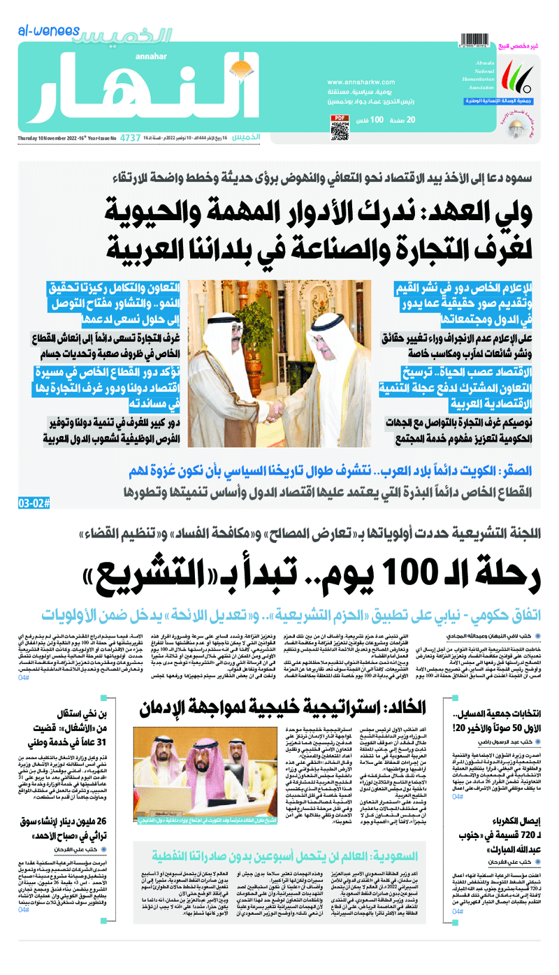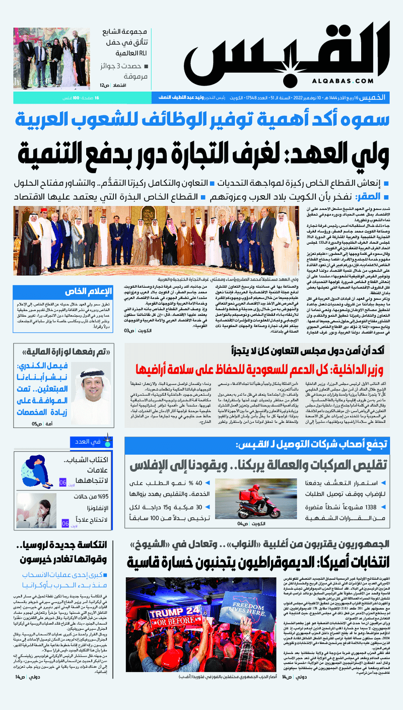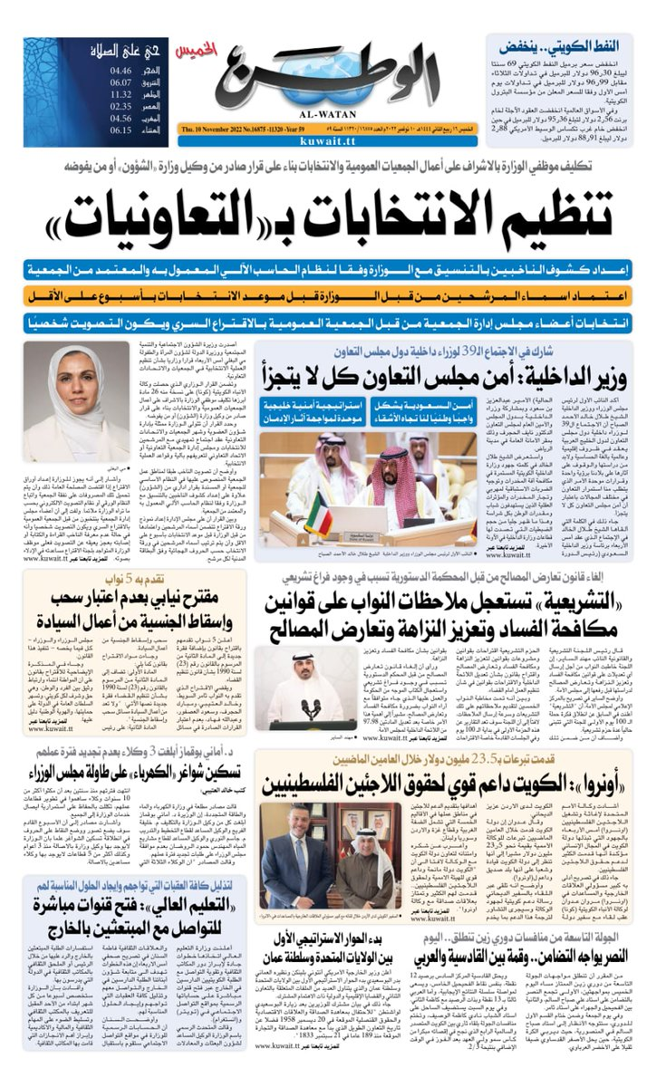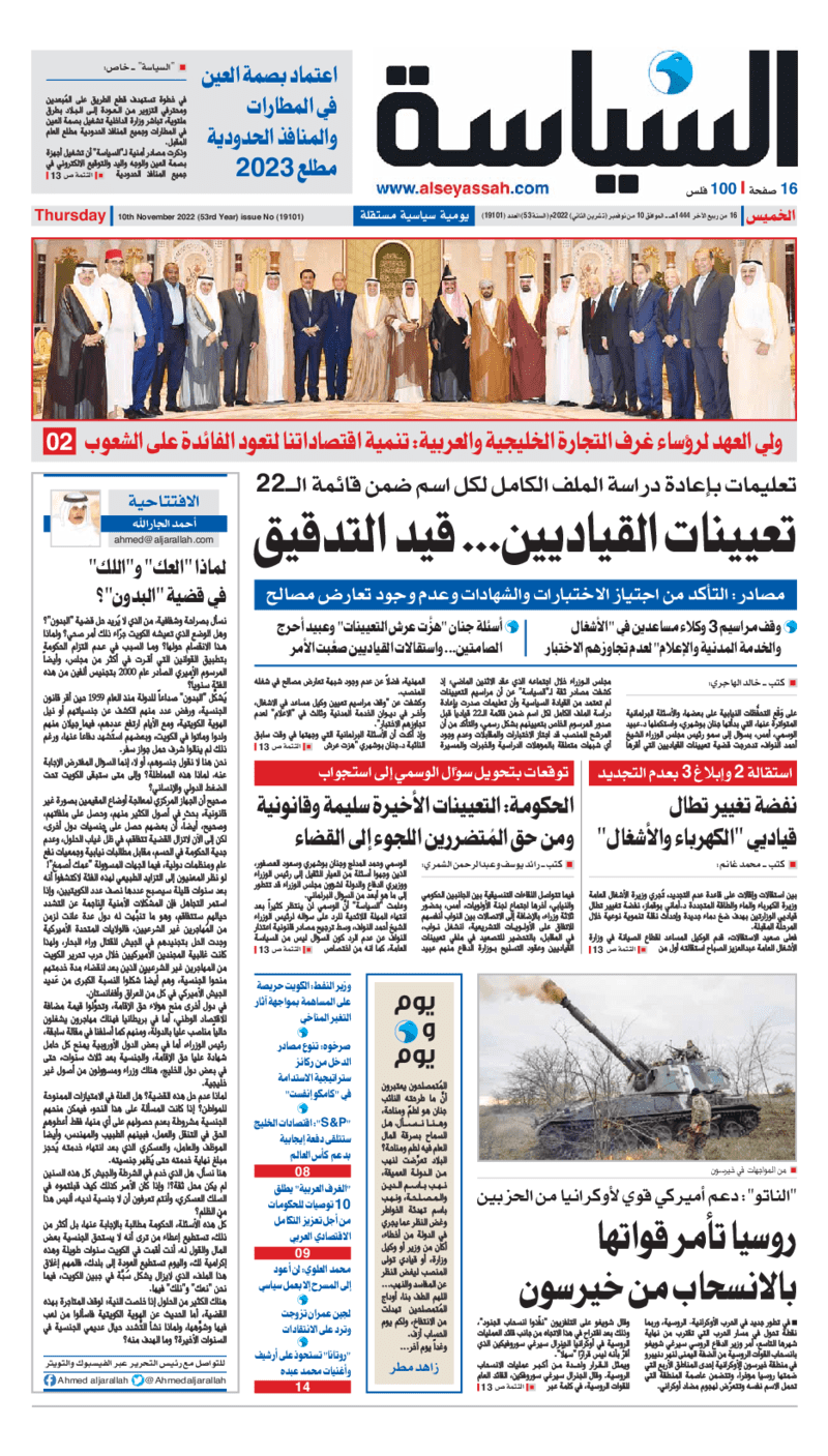 آخر الأخبار جرائم وقضايا “الجمارك” تضبط 29 ألف علبة مشروبات كحولية قادمة من دولة آسيوية في ميناء الشويخ 9 يونيو، 2024 محليات ممثلة عن دولة الكويت الطبيبة الكويتية أسماء الكندري تشارك في المؤتمر العالمي للمناظير في إيطاليا 8 يونيو، 2024 محليات “الصحة”: اكتمال وصول فريق الخدمات الطبية ببعثة الحج الكويتية لمكة المكرمة 8 يونيو، 2024 محليات “الصحة” تحدد 8 مراكز للصحة المدرسية لاستقبال الطلبة المبتعثين 8 يونيو، 2024 عربي وعالمي “الصحة العالمية”: تسجيل أول وفاة لشخص مصاب بـ«أنفلونزا الطيور» 7 يونيو، 2024 محليات عناوين الصحف الكويتية ليوم الخميس 10 نوفمبر 2022 محرر المحليات10 نوفمبر، 2022أضف تعليق1 دقائق جريدة الأنباء جريدة القبس جريدة السياسة جريدة الوطن جريدة النهار جريدة الصباح جريدة عرب تايمز الوسومTop عناوين الصحف المحلية من الممكن أن يعجبك جرائم وقضايا “الجمارك” تضبط 29 ألف علبة مشروبات كحولية قادمة من دولة آسيوية في ميناء الشويخ محليات ممثلة عن دولة الكويت الطبيبة الكويتية أسماء الكندري تشارك في المؤتمر العالمي للمناظير في إيطاليا محليات “الصحة”: اكتمال وصول فريق الخدمات الطبية ببعثة الحج الكويتية لمكة المكرمة محليات “الصحة” تحدد 8 مراكز للصحة المدرسية لاستقبال الطلبة المبتعثين عربي وعالمي “الصحة العالمية”: تسجيل أول وفاة لشخص مصاب بـ«أنفلونزا الطيور» تكنولوجيا رش السحب بملح البحر.. تجربة “ثورية” لتبريد كوكب الأرض أضف تعليق أضغط هنا لإضافة تعليق إلغاء الردالتعليقالاسم البريد الإلكتروني الموقع الإلكتروني Δ هذا الموقع يستخدم خدمة أكيسميت للتقليل من البريد المزعجة. اعرف المزيد عن كيفية التعامل مع بيانات التعليقات الخاصة بك processed.
