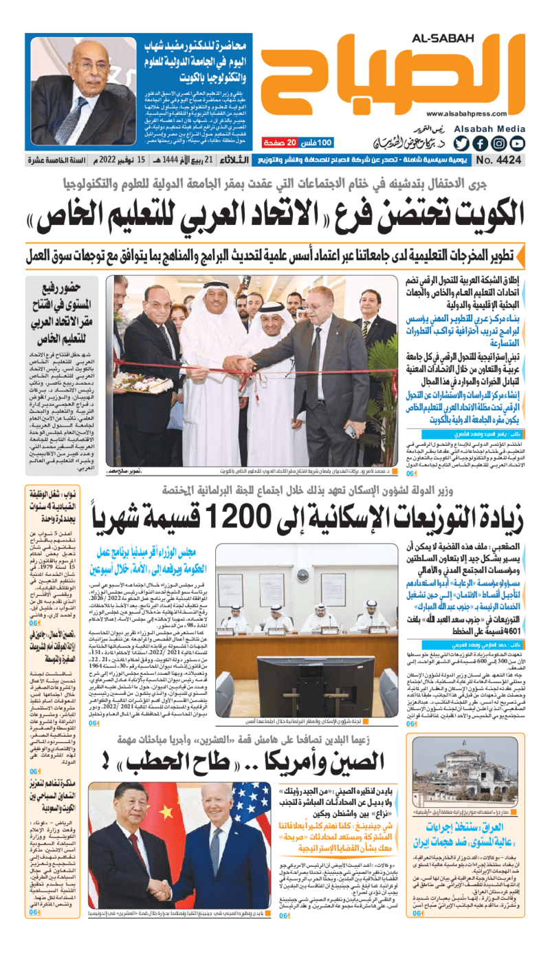 آخر الأخبار جرائم وقضايا “الجمارك” تضبط 29 ألف علبة مشروبات كحولية قادمة من دولة آسيوية في ميناء الشويخ 9 يونيو، 2024 محليات ممثلة عن دولة الكويت الطبيبة الكويتية أسماء الكندري تشارك في المؤتمر العالمي للمناظير في إيطاليا 8 يونيو، 2024 محليات “الصحة”: اكتمال وصول فريق الخدمات الطبية ببعثة الحج الكويتية لمكة المكرمة 8 يونيو، 2024 محليات “الصحة” تحدد 8 مراكز للصحة المدرسية لاستقبال الطلبة المبتعثين 8 يونيو، 2024 عربي وعالمي “الصحة العالمية”: تسجيل أول وفاة لشخص مصاب بـ«أنفلونزا الطيور» 7 يونيو، 2024 محليات عناوين الصحف الكويتية ليوم الثلاثاء 15 نوفمبر 2022 محرر المحليات15 نوفمبر، 2022أضف تعليق1 دقائق جريدة الأنباء جريدة القبس جريدة السياسة جريدة الوطن جريدة النهار جريدة الصباح الوسومTop عناوين الصحف المحلية من الممكن أن يعجبك جرائم وقضايا “الجمارك” تضبط 29 ألف علبة مشروبات كحولية قادمة من دولة آسيوية في ميناء الشويخ محليات ممثلة عن دولة الكويت الطبيبة الكويتية أسماء الكندري تشارك في المؤتمر العالمي للمناظير في إيطاليا محليات “الصحة”: اكتمال وصول فريق الخدمات الطبية ببعثة الحج الكويتية لمكة المكرمة محليات “الصحة” تحدد 8 مراكز للصحة المدرسية لاستقبال الطلبة المبتعثين عربي وعالمي “الصحة العالمية”: تسجيل أول وفاة لشخص مصاب بـ«أنفلونزا الطيور» تكنولوجيا رش السحب بملح البحر.. تجربة “ثورية” لتبريد كوكب الأرض أضف تعليق أضغط هنا لإضافة تعليق إلغاء الردالتعليقالاسم البريد الإلكتروني الموقع الإلكتروني Δ هذا الموقع يستخدم خدمة أكيسميت للتقليل من البريد المزعجة. اعرف المزيد عن كيفية التعامل مع بيانات التعليقات الخاصة بك processed.