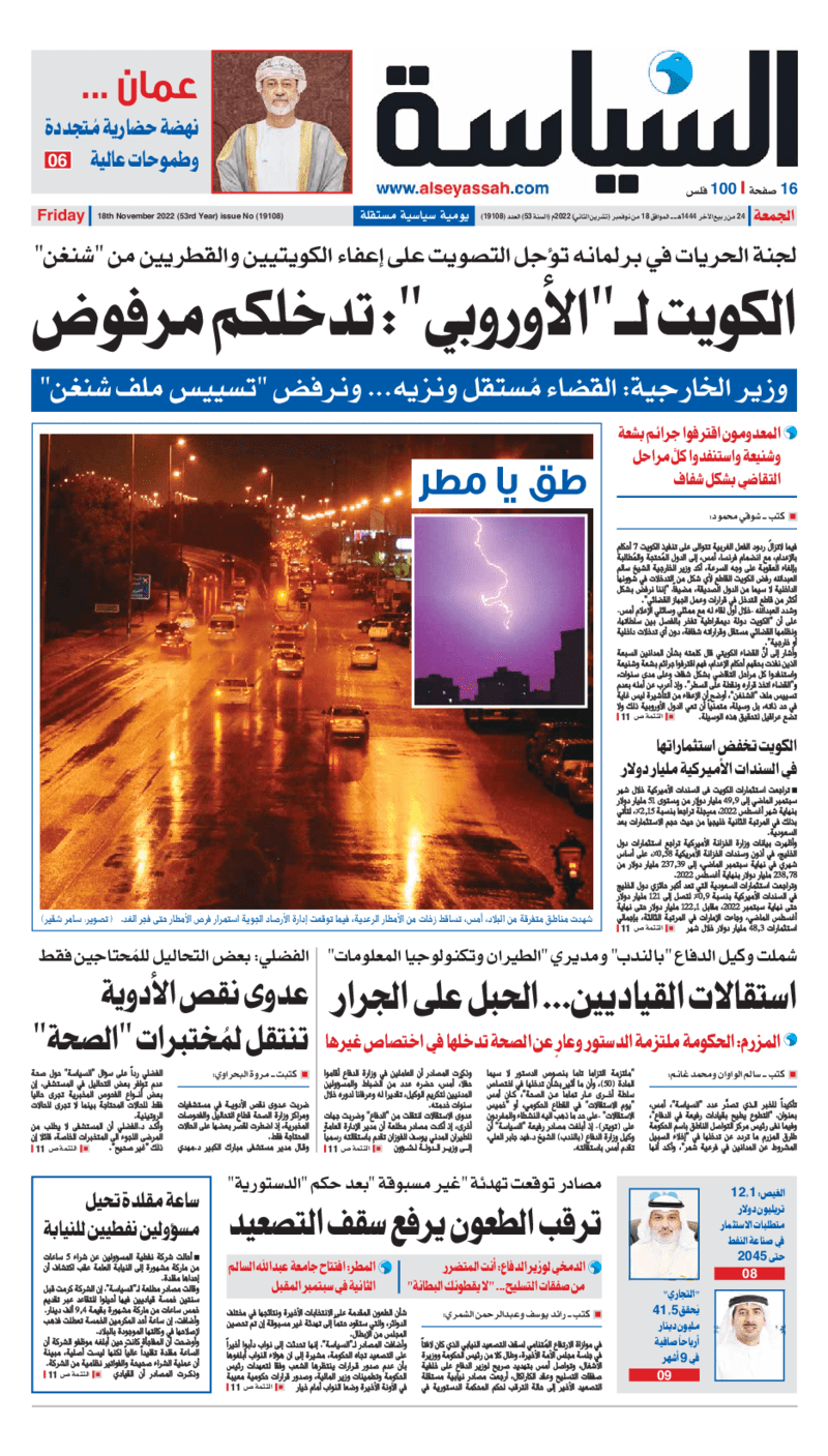 عناوين الصحف الكويتية ليوم الجمعة 18 نوفمبر 2022
