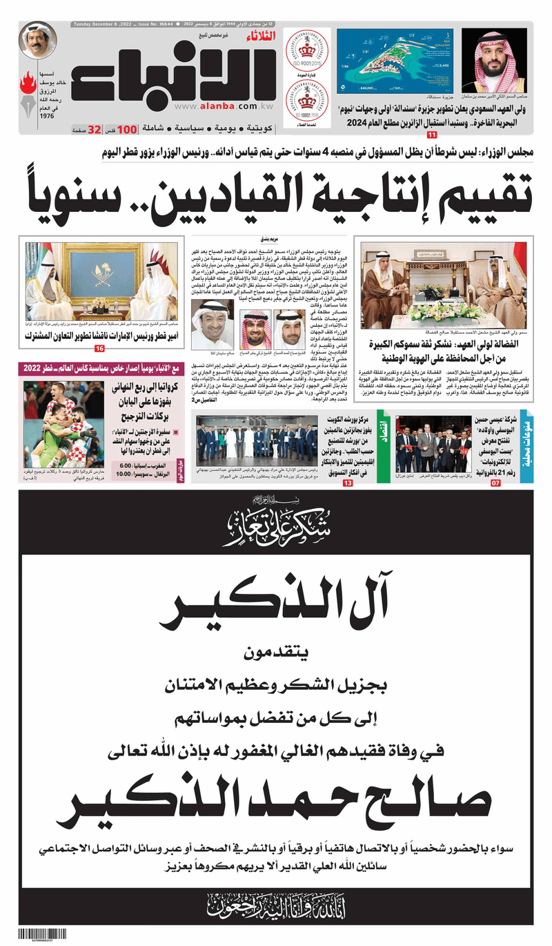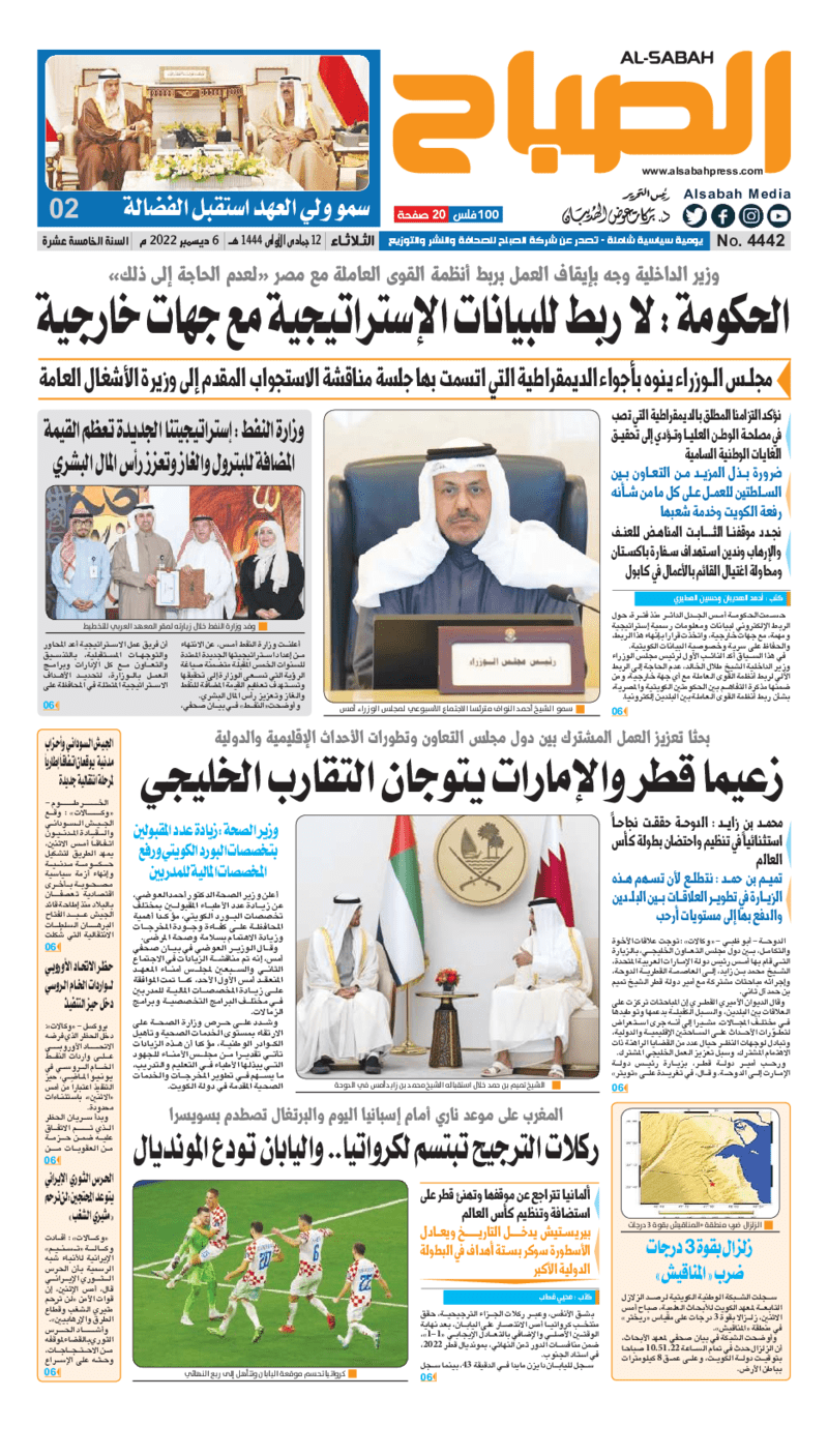 آخر الأخبار جرائم وقضايا “الجمارك” تضبط 29 ألف علبة مشروبات كحولية قادمة من دولة آسيوية في ميناء الشويخ 9 يونيو، 2024 محليات ممثلة عن دولة الكويت الطبيبة الكويتية أسماء الكندري تشارك في المؤتمر العالمي للمناظير في إيطاليا 8 يونيو، 2024 محليات “الصحة”: اكتمال وصول فريق الخدمات الطبية ببعثة الحج الكويتية لمكة المكرمة 8 يونيو، 2024 محليات “الصحة” تحدد 8 مراكز للصحة المدرسية لاستقبال الطلبة المبتعثين 8 يونيو، 2024 عربي وعالمي “الصحة العالمية”: تسجيل أول وفاة لشخص مصاب بـ«أنفلونزا الطيور» 7 يونيو، 2024 محليات عناوين الصحف الكويتية ليوم الثلاثاء 06 ديسمبر 2022 محرر المحليات6 ديسمبر، 2022أضف تعليق1 دقائق جريدة الأنباء جريدة القبس جريدة السياسة جريدة الوطن جريدة النهار جريدة الصباح الوسومTop عناوين الصحف المحلية من الممكن أن يعجبك جرائم وقضايا “الجمارك” تضبط 29 ألف علبة مشروبات كحولية قادمة من دولة آسيوية في ميناء الشويخ محليات ممثلة عن دولة الكويت الطبيبة الكويتية أسماء الكندري تشارك في المؤتمر العالمي للمناظير في إيطاليا محليات “الصحة”: اكتمال وصول فريق الخدمات الطبية ببعثة الحج الكويتية لمكة المكرمة محليات “الصحة” تحدد 8 مراكز للصحة المدرسية لاستقبال الطلبة المبتعثين عربي وعالمي “الصحة العالمية”: تسجيل أول وفاة لشخص مصاب بـ«أنفلونزا الطيور» تكنولوجيا رش السحب بملح البحر.. تجربة “ثورية” لتبريد كوكب الأرض أضف تعليق أضغط هنا لإضافة تعليق إلغاء الردالتعليقالاسم البريد الإلكتروني الموقع الإلكتروني Δ هذا الموقع يستخدم خدمة أكيسميت للتقليل من البريد المزعجة. اعرف المزيد عن كيفية التعامل مع بيانات التعليقات الخاصة بك processed.
