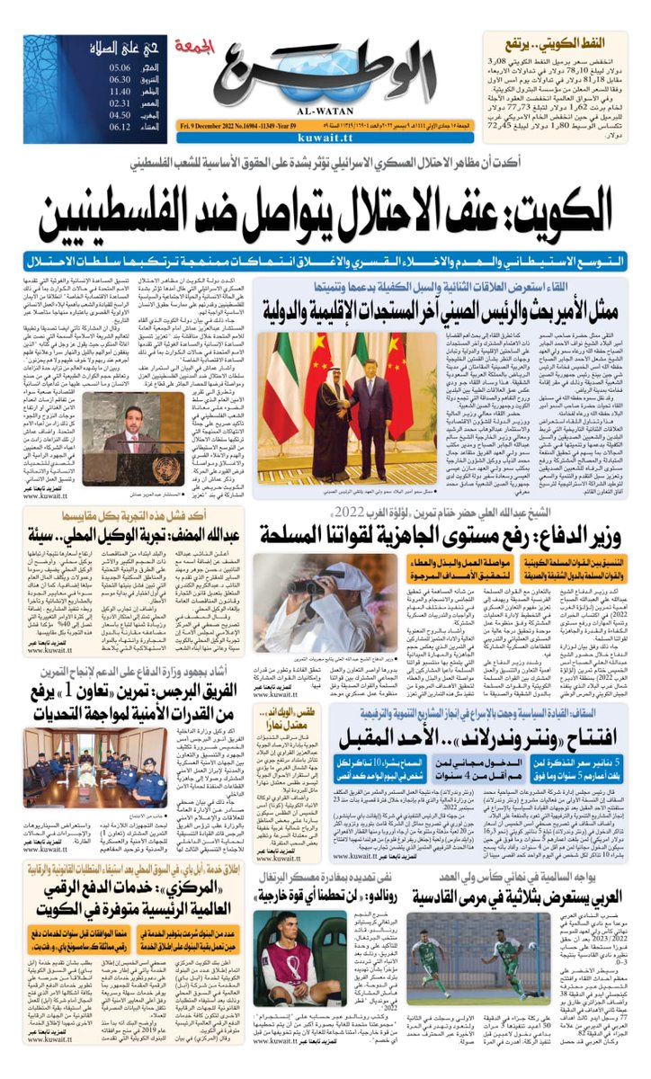 آخر الأخبار جرائم وقضايا “الجمارك” تضبط 29 ألف علبة مشروبات كحولية قادمة من دولة آسيوية في ميناء الشويخ 9 يونيو، 2024 محليات ممثلة عن دولة الكويت الطبيبة الكويتية أسماء الكندري تشارك في المؤتمر العالمي للمناظير في إيطاليا 8 يونيو، 2024 محليات “الصحة”: اكتمال وصول فريق الخدمات الطبية ببعثة الحج الكويتية لمكة المكرمة 8 يونيو، 2024 محليات “الصحة” تحدد 8 مراكز للصحة المدرسية لاستقبال الطلبة المبتعثين 8 يونيو، 2024 عربي وعالمي “الصحة العالمية”: تسجيل أول وفاة لشخص مصاب بـ«أنفلونزا الطيور» 7 يونيو، 2024 محليات عناوين الصحف الكويتية ليوم الجمعة 09 ديسمبر 2022 محرر المحليات9 ديسمبر، 2022أضف تعليق1 دقائق جريدة الأنباء جريدة القبس جريدة السياسة جريدة الوطن جريدة النهار جريدة الصباح الوسومTop عناوين الصحف المحلية من الممكن أن يعجبك جرائم وقضايا “الجمارك” تضبط 29 ألف علبة مشروبات كحولية قادمة من دولة آسيوية في ميناء الشويخ محليات ممثلة عن دولة الكويت الطبيبة الكويتية أسماء الكندري تشارك في المؤتمر العالمي للمناظير في إيطاليا محليات “الصحة”: اكتمال وصول فريق الخدمات الطبية ببعثة الحج الكويتية لمكة المكرمة محليات “الصحة” تحدد 8 مراكز للصحة المدرسية لاستقبال الطلبة المبتعثين عربي وعالمي “الصحة العالمية”: تسجيل أول وفاة لشخص مصاب بـ«أنفلونزا الطيور» تكنولوجيا رش السحب بملح البحر.. تجربة “ثورية” لتبريد كوكب الأرض أضف تعليق أضغط هنا لإضافة تعليق إلغاء الردالتعليقالاسم البريد الإلكتروني الموقع الإلكتروني Δ هذا الموقع يستخدم خدمة أكيسميت للتقليل من البريد المزعجة. اعرف المزيد عن كيفية التعامل مع بيانات التعليقات الخاصة بك processed.