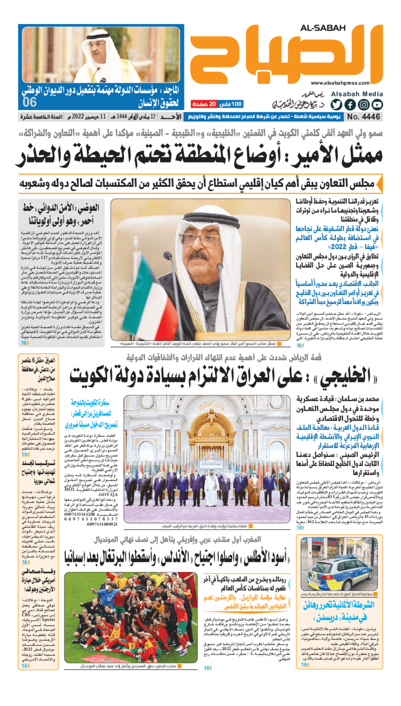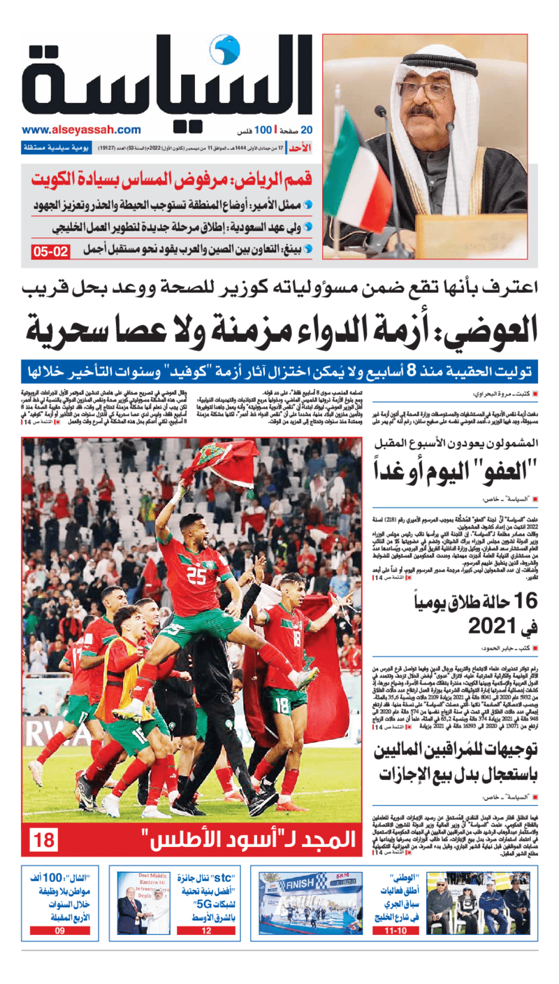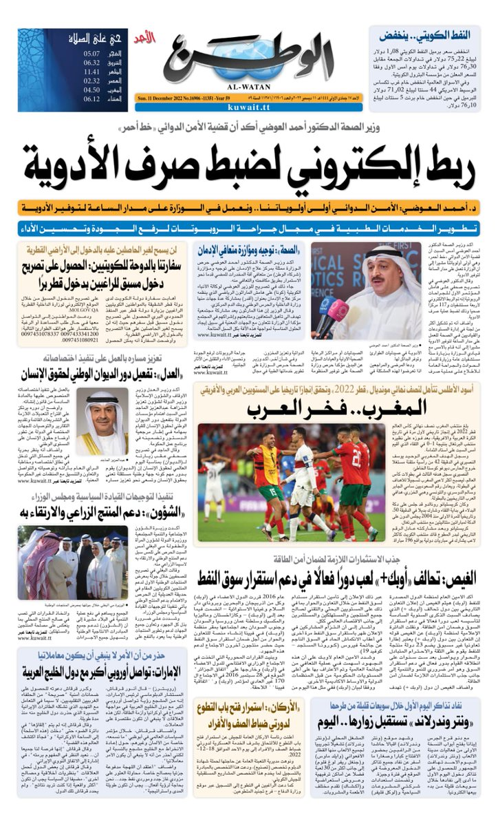 آخر الأخبار جرائم وقضايا “الجمارك” تضبط 29 ألف علبة مشروبات كحولية قادمة من دولة آسيوية في ميناء الشويخ 9 يونيو، 2024 محليات ممثلة عن دولة الكويت الطبيبة الكويتية أسماء الكندري تشارك في المؤتمر العالمي للمناظير في إيطاليا 8 يونيو، 2024 محليات “الصحة”: اكتمال وصول فريق الخدمات الطبية ببعثة الحج الكويتية لمكة المكرمة 8 يونيو، 2024 محليات “الصحة” تحدد 8 مراكز للصحة المدرسية لاستقبال الطلبة المبتعثين 8 يونيو، 2024 عربي وعالمي “الصحة العالمية”: تسجيل أول وفاة لشخص مصاب بـ«أنفلونزا الطيور» 7 يونيو، 2024 محليات عناوين الصحف الكويتية ليوم الأحد 11 ديسمبر 2022 محرر المحليات11 ديسمبر، 2022أضف تعليق1 دقائق جريدة الأنباء جريدة القبس جريدة السياسة جريدة الوطن جريدة النهار جريدة الصباح الوسومTop عناوين الصحف المحلية من الممكن أن يعجبك جرائم وقضايا “الجمارك” تضبط 29 ألف علبة مشروبات كحولية قادمة من دولة آسيوية في ميناء الشويخ محليات ممثلة عن دولة الكويت الطبيبة الكويتية أسماء الكندري تشارك في المؤتمر العالمي للمناظير في إيطاليا محليات “الصحة”: اكتمال وصول فريق الخدمات الطبية ببعثة الحج الكويتية لمكة المكرمة محليات “الصحة” تحدد 8 مراكز للصحة المدرسية لاستقبال الطلبة المبتعثين عربي وعالمي “الصحة العالمية”: تسجيل أول وفاة لشخص مصاب بـ«أنفلونزا الطيور» تكنولوجيا رش السحب بملح البحر.. تجربة “ثورية” لتبريد كوكب الأرض أضف تعليق أضغط هنا لإضافة تعليق إلغاء الردالتعليقالاسم البريد الإلكتروني الموقع الإلكتروني Δ هذا الموقع يستخدم خدمة أكيسميت للتقليل من البريد المزعجة. اعرف المزيد عن كيفية التعامل مع بيانات التعليقات الخاصة بك processed.