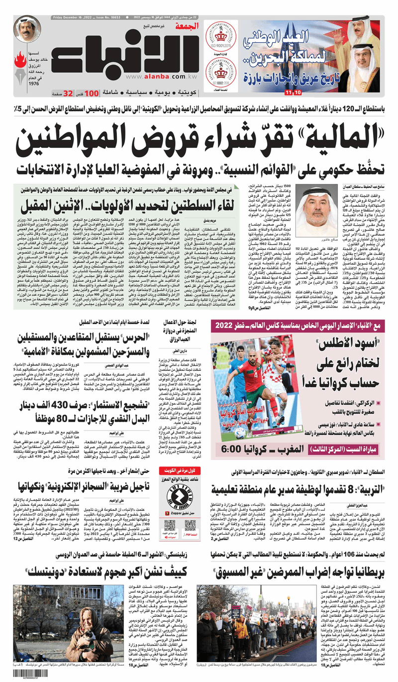 آخر الأخبار جرائم وقضايا “الجمارك” تضبط 29 ألف علبة مشروبات كحولية قادمة من دولة آسيوية في ميناء الشويخ 9 يونيو، 2024 محليات ممثلة عن دولة الكويت الطبيبة الكويتية أسماء الكندري تشارك في المؤتمر العالمي للمناظير في إيطاليا 8 يونيو، 2024 محليات “الصحة”: اكتمال وصول فريق الخدمات الطبية ببعثة الحج الكويتية لمكة المكرمة 8 يونيو، 2024 محليات “الصحة” تحدد 8 مراكز للصحة المدرسية لاستقبال الطلبة المبتعثين 8 يونيو، 2024 عربي وعالمي “الصحة العالمية”: تسجيل أول وفاة لشخص مصاب بـ«أنفلونزا الطيور» 7 يونيو، 2024 محليات عناوين الصحف الكويتية ليوم الجمعة 16 ديسمبر 2022 محرر المحليات16 ديسمبر، 2022أضف تعليق1 دقائق جريدة الأنباء جريدة القبس جريدة السياسة جريدة الوطن جريدة النهار جريدة الصباح الوسومTop عناوين الصحف المحلية من الممكن أن يعجبك جرائم وقضايا “الجمارك” تضبط 29 ألف علبة مشروبات كحولية قادمة من دولة آسيوية في ميناء الشويخ محليات ممثلة عن دولة الكويت الطبيبة الكويتية أسماء الكندري تشارك في المؤتمر العالمي للمناظير في إيطاليا محليات “الصحة”: اكتمال وصول فريق الخدمات الطبية ببعثة الحج الكويتية لمكة المكرمة محليات “الصحة” تحدد 8 مراكز للصحة المدرسية لاستقبال الطلبة المبتعثين عربي وعالمي “الصحة العالمية”: تسجيل أول وفاة لشخص مصاب بـ«أنفلونزا الطيور» تكنولوجيا رش السحب بملح البحر.. تجربة “ثورية” لتبريد كوكب الأرض أضف تعليق أضغط هنا لإضافة تعليق إلغاء الردالتعليقالاسم البريد الإلكتروني الموقع الإلكتروني Δ هذا الموقع يستخدم خدمة أكيسميت للتقليل من البريد المزعجة. اعرف المزيد عن كيفية التعامل مع بيانات التعليقات الخاصة بك processed.