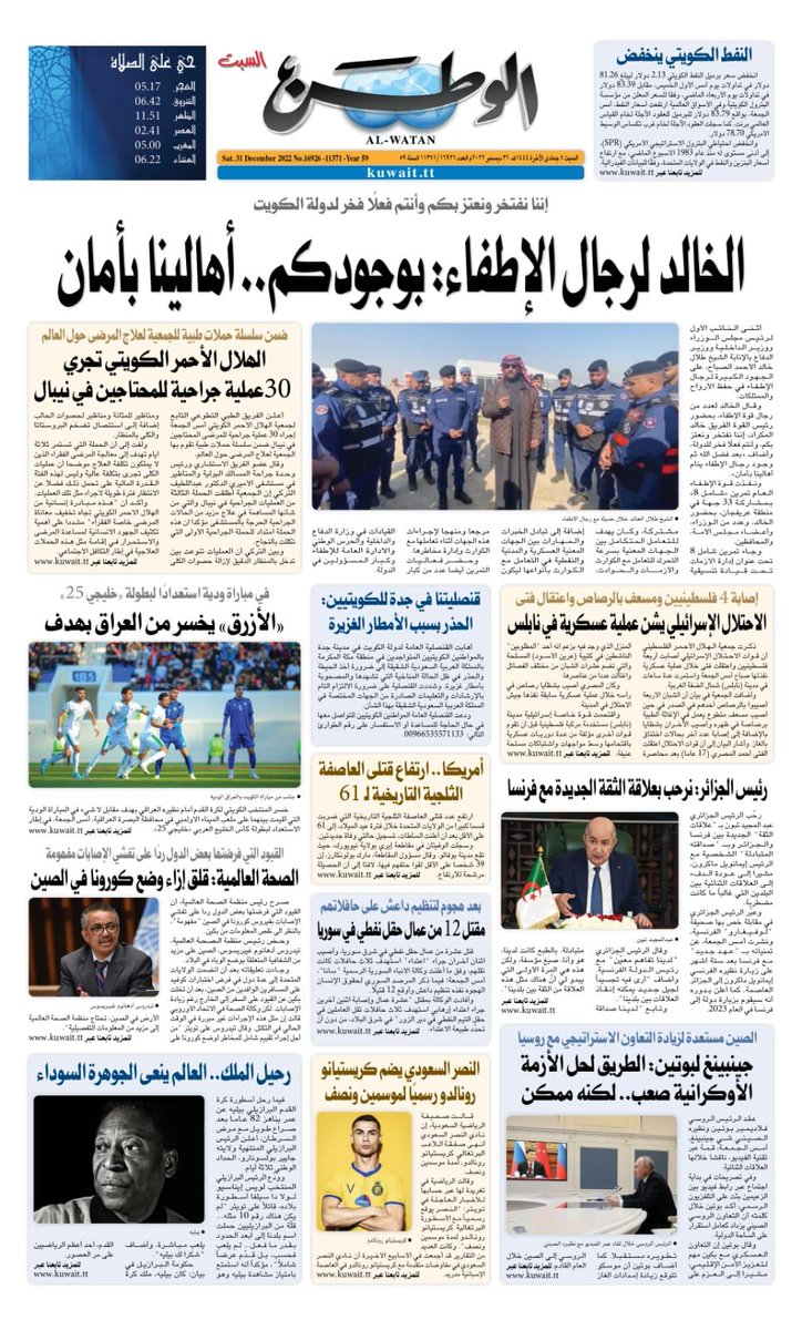 آخر الأخبار جرائم وقضايا “الجمارك” تضبط 29 ألف علبة مشروبات كحولية قادمة من دولة آسيوية في ميناء الشويخ 9 يونيو، 2024 محليات ممثلة عن دولة الكويت الطبيبة الكويتية أسماء الكندري تشارك في المؤتمر العالمي للمناظير في إيطاليا 8 يونيو، 2024 محليات “الصحة”: اكتمال وصول فريق الخدمات الطبية ببعثة الحج الكويتية لمكة المكرمة 8 يونيو، 2024 محليات “الصحة” تحدد 8 مراكز للصحة المدرسية لاستقبال الطلبة المبتعثين 8 يونيو، 2024 عربي وعالمي “الصحة العالمية”: تسجيل أول وفاة لشخص مصاب بـ«أنفلونزا الطيور» 7 يونيو، 2024 محليات عناوين الصحف الكويتية ليوم السبت 31 ديسمبر 2022 محرر المحليات31 ديسمبر، 2022أضف تعليق1 دقائق جريدة الوطن الوسومTop عناوين الصحف المحلية من الممكن أن يعجبك جرائم وقضايا “الجمارك” تضبط 29 ألف علبة مشروبات كحولية قادمة من دولة آسيوية في ميناء الشويخ محليات ممثلة عن دولة الكويت الطبيبة الكويتية أسماء الكندري تشارك في المؤتمر العالمي للمناظير في إيطاليا محليات “الصحة”: اكتمال وصول فريق الخدمات الطبية ببعثة الحج الكويتية لمكة المكرمة محليات “الصحة” تحدد 8 مراكز للصحة المدرسية لاستقبال الطلبة المبتعثين عربي وعالمي “الصحة العالمية”: تسجيل أول وفاة لشخص مصاب بـ«أنفلونزا الطيور» تكنولوجيا رش السحب بملح البحر.. تجربة “ثورية” لتبريد كوكب الأرض أضف تعليق أضغط هنا لإضافة تعليق إلغاء الردالتعليقالاسم البريد الإلكتروني الموقع الإلكتروني Δ هذا الموقع يستخدم خدمة أكيسميت للتقليل من البريد المزعجة. اعرف المزيد عن كيفية التعامل مع بيانات التعليقات الخاصة بك processed.