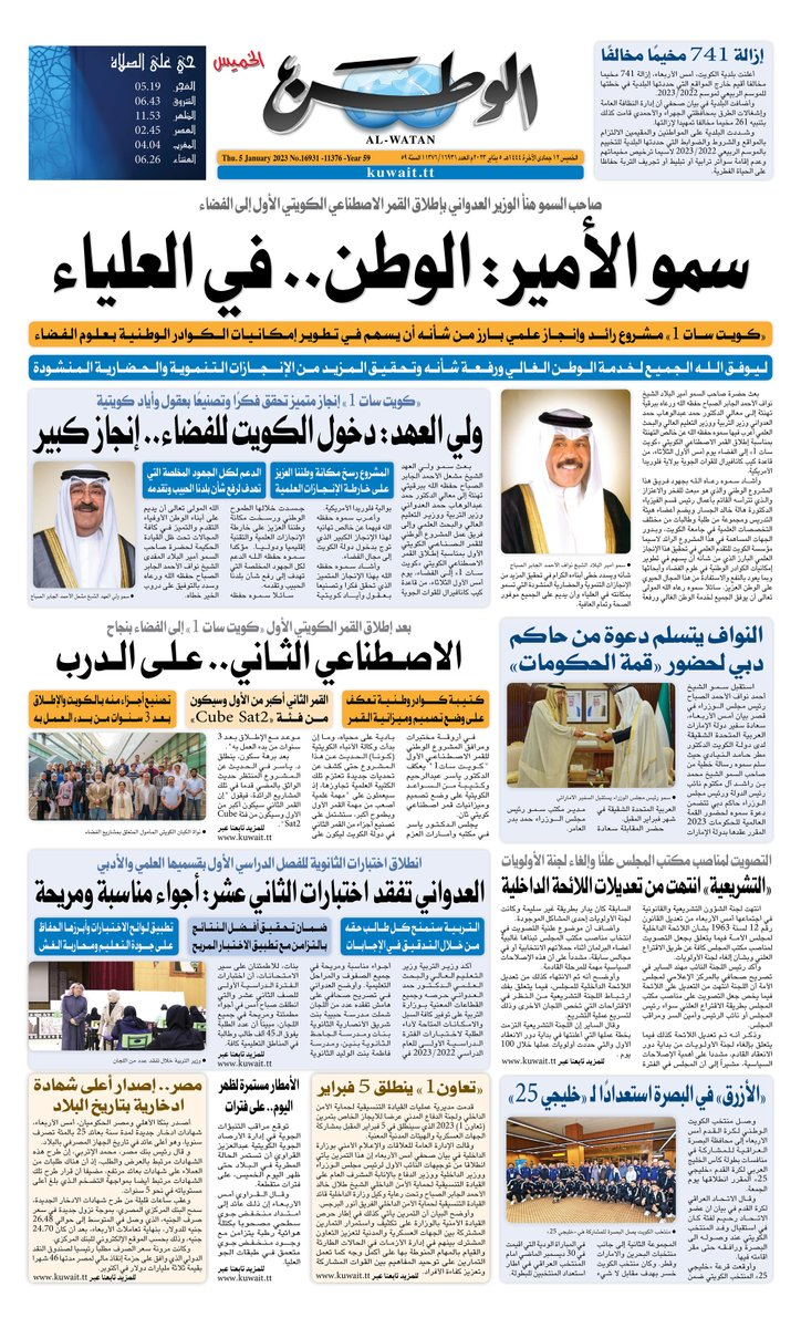 آخر الأخبار جرائم وقضايا “الجمارك” تضبط 29 ألف علبة مشروبات كحولية قادمة من دولة آسيوية في ميناء الشويخ 9 يونيو، 2024 محليات ممثلة عن دولة الكويت الطبيبة الكويتية أسماء الكندري تشارك في المؤتمر العالمي للمناظير في إيطاليا 8 يونيو، 2024 محليات “الصحة”: اكتمال وصول فريق الخدمات الطبية ببعثة الحج الكويتية لمكة المكرمة 8 يونيو، 2024 محليات “الصحة” تحدد 8 مراكز للصحة المدرسية لاستقبال الطلبة المبتعثين 8 يونيو، 2024 عربي وعالمي “الصحة العالمية”: تسجيل أول وفاة لشخص مصاب بـ«أنفلونزا الطيور» 7 يونيو، 2024 محليات عناوين الصحف الكويتية ليوم الخميس 05 يناير 2023 محرر المحليات5 يناير، 2023أضف تعليق1 دقائق جريدة الأنباء جريدة القبس جريدة السياسة جريدة الوطن جريدة النهار جريدة الصباح الوسومTop عناوين الصحف المحلية من الممكن أن يعجبك جرائم وقضايا “الجمارك” تضبط 29 ألف علبة مشروبات كحولية قادمة من دولة آسيوية في ميناء الشويخ محليات ممثلة عن دولة الكويت الطبيبة الكويتية أسماء الكندري تشارك في المؤتمر العالمي للمناظير في إيطاليا محليات “الصحة”: اكتمال وصول فريق الخدمات الطبية ببعثة الحج الكويتية لمكة المكرمة محليات “الصحة” تحدد 8 مراكز للصحة المدرسية لاستقبال الطلبة المبتعثين عربي وعالمي “الصحة العالمية”: تسجيل أول وفاة لشخص مصاب بـ«أنفلونزا الطيور» تكنولوجيا رش السحب بملح البحر.. تجربة “ثورية” لتبريد كوكب الأرض أضف تعليق أضغط هنا لإضافة تعليق إلغاء الردالتعليقالاسم البريد الإلكتروني الموقع الإلكتروني Δ هذا الموقع يستخدم خدمة أكيسميت للتقليل من البريد المزعجة. اعرف المزيد عن كيفية التعامل مع بيانات التعليقات الخاصة بك processed.