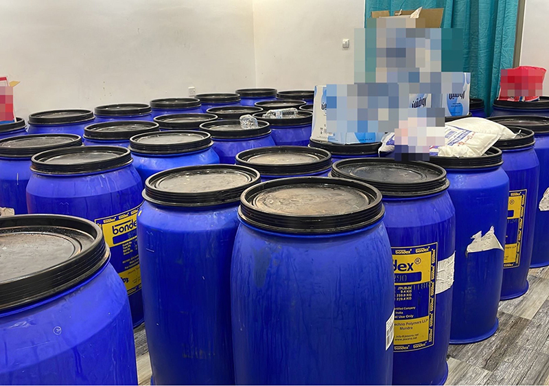 تمكن قطاع الأمن العام ممثلاً بمديرية أمن الأحمدي من ضبط شخص يدير مصنع للخمور المحلية في منطقة الوفرة وذلك من خلال المتابعة الأمنية، حيث عثر في الموقع عدد 217 زجاجة خمر محلية الصنع جاهزة للبيع وادوات التصنيع وتم احالته والمضبوطات الى جهات الإختصاص لاتخاذ اللازم بحقه.