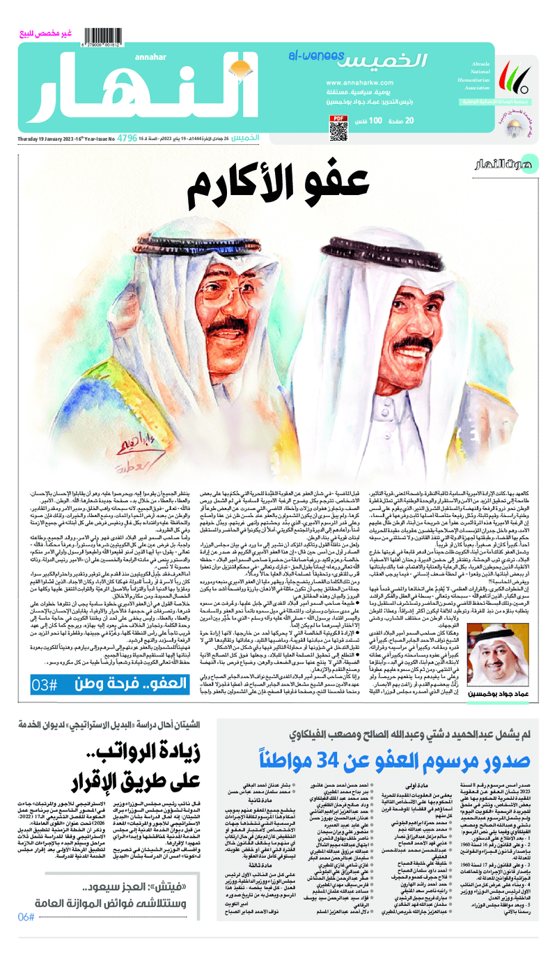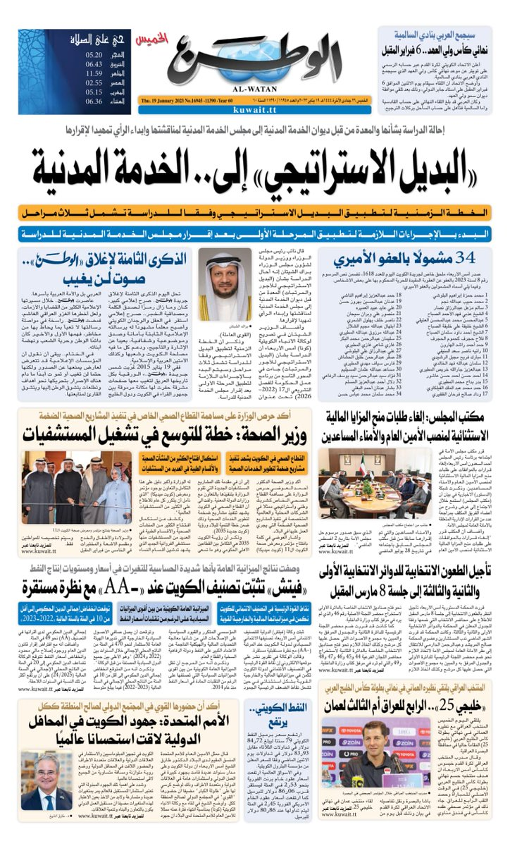 آخر الأخبار جرائم وقضايا “الجمارك” تضبط 29 ألف علبة مشروبات كحولية قادمة من دولة آسيوية في ميناء الشويخ 9 يونيو، 2024 محليات ممثلة عن دولة الكويت الطبيبة الكويتية أسماء الكندري تشارك في المؤتمر العالمي للمناظير في إيطاليا 8 يونيو، 2024 محليات “الصحة”: اكتمال وصول فريق الخدمات الطبية ببعثة الحج الكويتية لمكة المكرمة 8 يونيو، 2024 محليات “الصحة” تحدد 8 مراكز للصحة المدرسية لاستقبال الطلبة المبتعثين 8 يونيو، 2024 عربي وعالمي “الصحة العالمية”: تسجيل أول وفاة لشخص مصاب بـ«أنفلونزا الطيور» 7 يونيو، 2024 محليات عناوين الصحف الكويتية ليوم الخميس 19 يناير 2023 محرر المحليات19 يناير، 2023أضف تعليق1 دقائق جريدة الأنباء جريدة القبس جريدة السياسة جريدة الوطن جريدة النهار جريدة الصباح الوسومTop عناوين الصحف المحلية من الممكن أن يعجبك جرائم وقضايا “الجمارك” تضبط 29 ألف علبة مشروبات كحولية قادمة من دولة آسيوية في ميناء الشويخ محليات ممثلة عن دولة الكويت الطبيبة الكويتية أسماء الكندري تشارك في المؤتمر العالمي للمناظير في إيطاليا محليات “الصحة”: اكتمال وصول فريق الخدمات الطبية ببعثة الحج الكويتية لمكة المكرمة محليات “الصحة” تحدد 8 مراكز للصحة المدرسية لاستقبال الطلبة المبتعثين عربي وعالمي “الصحة العالمية”: تسجيل أول وفاة لشخص مصاب بـ«أنفلونزا الطيور» تكنولوجيا رش السحب بملح البحر.. تجربة “ثورية” لتبريد كوكب الأرض أضف تعليق أضغط هنا لإضافة تعليق إلغاء الردالتعليقالاسم البريد الإلكتروني الموقع الإلكتروني Δ هذا الموقع يستخدم خدمة أكيسميت للتقليل من البريد المزعجة. اعرف المزيد عن كيفية التعامل مع بيانات التعليقات الخاصة بك processed.