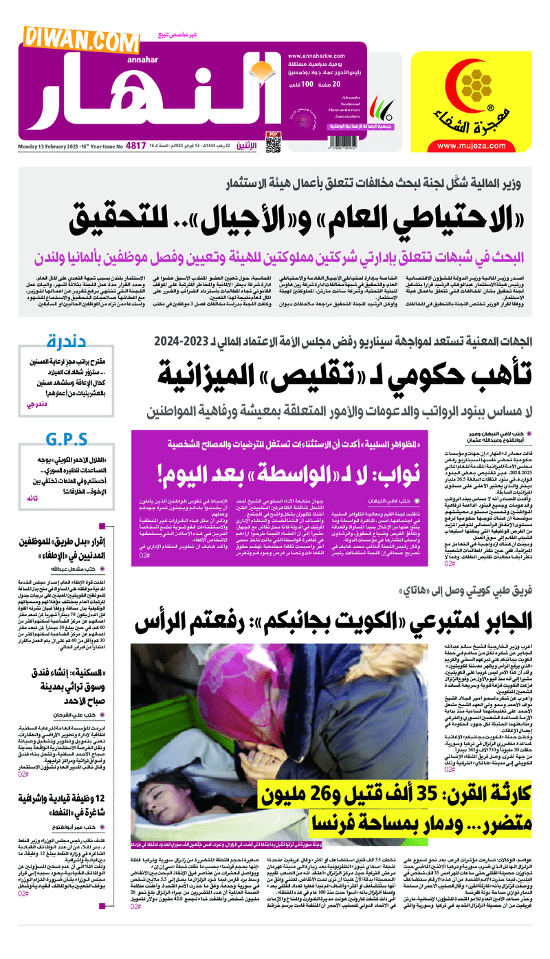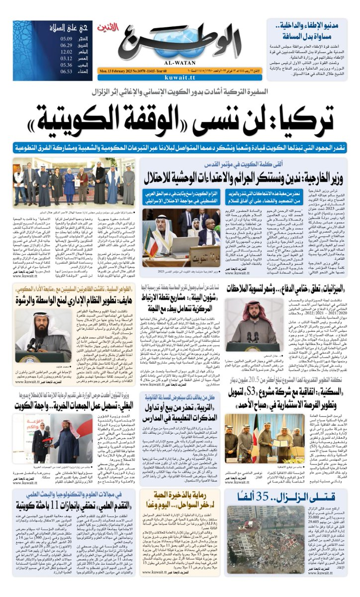 آخر الأخبار جرائم وقضايا “الجمارك” تضبط 29 ألف علبة مشروبات كحولية قادمة من دولة آسيوية في ميناء الشويخ 9 يونيو، 2024 محليات ممثلة عن دولة الكويت الطبيبة الكويتية أسماء الكندري تشارك في المؤتمر العالمي للمناظير في إيطاليا 8 يونيو، 2024 محليات “الصحة”: اكتمال وصول فريق الخدمات الطبية ببعثة الحج الكويتية لمكة المكرمة 8 يونيو، 2024 محليات “الصحة” تحدد 8 مراكز للصحة المدرسية لاستقبال الطلبة المبتعثين 8 يونيو، 2024 عربي وعالمي “الصحة العالمية”: تسجيل أول وفاة لشخص مصاب بـ«أنفلونزا الطيور» 7 يونيو، 2024 محليات عناوين الصحف الكويتية ليوم الاثنين 13 فبراير 2023 محرر المحليات13 فبراير، 2023أضف تعليق1 دقائق جريدة الأنباء جريدة القبس جريدة السياسة جريدة الوطن جريدة النهار جريدة الصباح الوسومTop عناوين الصحف المحلية من الممكن أن يعجبك جرائم وقضايا “الجمارك” تضبط 29 ألف علبة مشروبات كحولية قادمة من دولة آسيوية في ميناء الشويخ محليات ممثلة عن دولة الكويت الطبيبة الكويتية أسماء الكندري تشارك في المؤتمر العالمي للمناظير في إيطاليا محليات “الصحة”: اكتمال وصول فريق الخدمات الطبية ببعثة الحج الكويتية لمكة المكرمة محليات “الصحة” تحدد 8 مراكز للصحة المدرسية لاستقبال الطلبة المبتعثين عربي وعالمي “الصحة العالمية”: تسجيل أول وفاة لشخص مصاب بـ«أنفلونزا الطيور» تكنولوجيا رش السحب بملح البحر.. تجربة “ثورية” لتبريد كوكب الأرض أضف تعليق أضغط هنا لإضافة تعليق إلغاء الردالتعليقالاسم البريد الإلكتروني الموقع الإلكتروني Δ هذا الموقع يستخدم خدمة أكيسميت للتقليل من البريد المزعجة. اعرف المزيد عن كيفية التعامل مع بيانات التعليقات الخاصة بك processed.