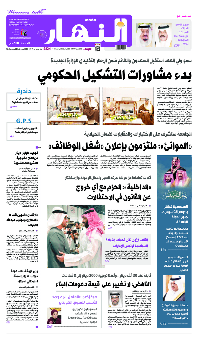 آخر الأخبار جرائم وقضايا “الجمارك” تضبط 29 ألف علبة مشروبات كحولية قادمة من دولة آسيوية في ميناء الشويخ 9 يونيو، 2024 محليات ممثلة عن دولة الكويت الطبيبة الكويتية أسماء الكندري تشارك في المؤتمر العالمي للمناظير في إيطاليا 8 يونيو، 2024 محليات “الصحة”: اكتمال وصول فريق الخدمات الطبية ببعثة الحج الكويتية لمكة المكرمة 8 يونيو، 2024 محليات “الصحة” تحدد 8 مراكز للصحة المدرسية لاستقبال الطلبة المبتعثين 8 يونيو، 2024 عربي وعالمي “الصحة العالمية”: تسجيل أول وفاة لشخص مصاب بـ«أنفلونزا الطيور» 7 يونيو، 2024 محليات عناوين الصحف الكويتية ليوم الأربعاء 22 فبراير 2023 محرر المحليات22 فبراير، 2023أضف تعليق1 دقائق جريدة الأنباء جريدة القبس جريدة السياسة جريدة الوطن جريدة النهار جريدة الصباح الوسومTop عناوين الصحف المحلية من الممكن أن يعجبك جرائم وقضايا “الجمارك” تضبط 29 ألف علبة مشروبات كحولية قادمة من دولة آسيوية في ميناء الشويخ محليات ممثلة عن دولة الكويت الطبيبة الكويتية أسماء الكندري تشارك في المؤتمر العالمي للمناظير في إيطاليا محليات “الصحة”: اكتمال وصول فريق الخدمات الطبية ببعثة الحج الكويتية لمكة المكرمة محليات “الصحة” تحدد 8 مراكز للصحة المدرسية لاستقبال الطلبة المبتعثين عربي وعالمي “الصحة العالمية”: تسجيل أول وفاة لشخص مصاب بـ«أنفلونزا الطيور» تكنولوجيا رش السحب بملح البحر.. تجربة “ثورية” لتبريد كوكب الأرض أضف تعليق أضغط هنا لإضافة تعليق إلغاء الردالتعليقالاسم البريد الإلكتروني الموقع الإلكتروني Δ هذا الموقع يستخدم خدمة أكيسميت للتقليل من البريد المزعجة. اعرف المزيد عن كيفية التعامل مع بيانات التعليقات الخاصة بك processed.