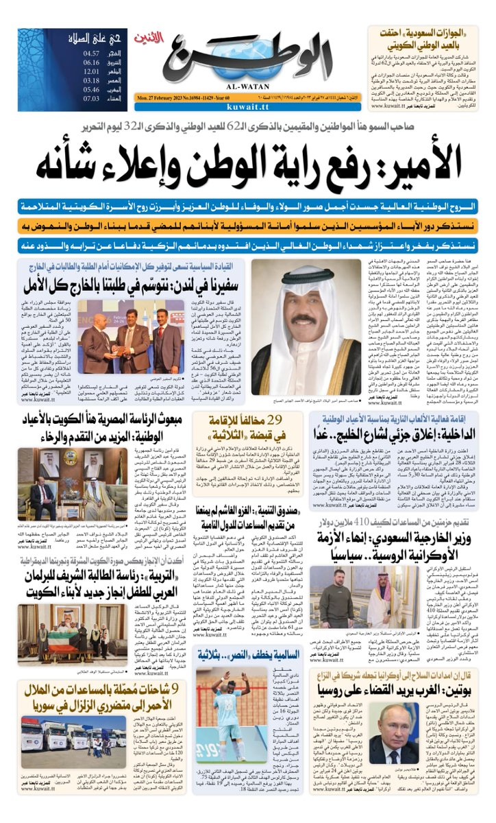 آخر الأخبار جرائم وقضايا “الجمارك” تضبط 29 ألف علبة مشروبات كحولية قادمة من دولة آسيوية في ميناء الشويخ 9 يونيو، 2024 محليات ممثلة عن دولة الكويت الطبيبة الكويتية أسماء الكندري تشارك في المؤتمر العالمي للمناظير في إيطاليا 8 يونيو، 2024 محليات “الصحة”: اكتمال وصول فريق الخدمات الطبية ببعثة الحج الكويتية لمكة المكرمة 8 يونيو، 2024 محليات “الصحة” تحدد 8 مراكز للصحة المدرسية لاستقبال الطلبة المبتعثين 8 يونيو، 2024 عربي وعالمي “الصحة العالمية”: تسجيل أول وفاة لشخص مصاب بـ«أنفلونزا الطيور» 7 يونيو، 2024 محليات عناوين الصحف الكويتية ليوم الاثنين 27 فبراير 2023 محرر المحليات27 فبراير، 2023أضف تعليق1 دقائق جريدة القبس جريدة الوطن الوسومTop عناوين الصحف المحلية من الممكن أن يعجبك جرائم وقضايا “الجمارك” تضبط 29 ألف علبة مشروبات كحولية قادمة من دولة آسيوية في ميناء الشويخ محليات ممثلة عن دولة الكويت الطبيبة الكويتية أسماء الكندري تشارك في المؤتمر العالمي للمناظير في إيطاليا محليات “الصحة”: اكتمال وصول فريق الخدمات الطبية ببعثة الحج الكويتية لمكة المكرمة محليات “الصحة” تحدد 8 مراكز للصحة المدرسية لاستقبال الطلبة المبتعثين عربي وعالمي “الصحة العالمية”: تسجيل أول وفاة لشخص مصاب بـ«أنفلونزا الطيور» تكنولوجيا رش السحب بملح البحر.. تجربة “ثورية” لتبريد كوكب الأرض أضف تعليق أضغط هنا لإضافة تعليق إلغاء الردالتعليقالاسم البريد الإلكتروني الموقع الإلكتروني Δ هذا الموقع يستخدم خدمة أكيسميت للتقليل من البريد المزعجة. اعرف المزيد عن كيفية التعامل مع بيانات التعليقات الخاصة بك processed.
