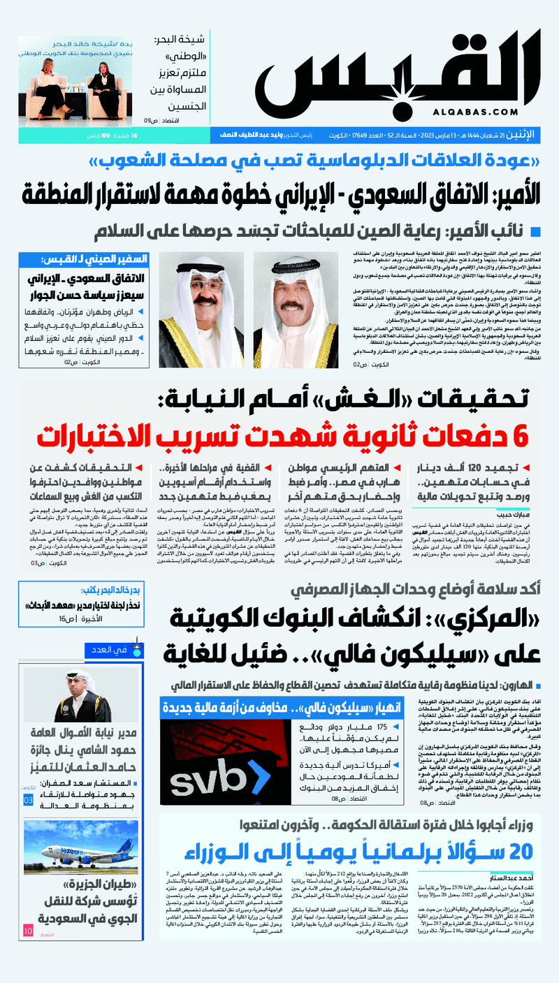 آخر الأخبار جرائم وقضايا “الجمارك” تضبط 29 ألف علبة مشروبات كحولية قادمة من دولة آسيوية في ميناء الشويخ 9 يونيو، 2024 محليات ممثلة عن دولة الكويت الطبيبة الكويتية أسماء الكندري تشارك في المؤتمر العالمي للمناظير في إيطاليا 8 يونيو، 2024 محليات “الصحة”: اكتمال وصول فريق الخدمات الطبية ببعثة الحج الكويتية لمكة المكرمة 8 يونيو، 2024 محليات “الصحة” تحدد 8 مراكز للصحة المدرسية لاستقبال الطلبة المبتعثين 8 يونيو، 2024 عربي وعالمي “الصحة العالمية”: تسجيل أول وفاة لشخص مصاب بـ«أنفلونزا الطيور» 7 يونيو، 2024 محليات عناوين الصحف الكويتية ليوم الاثنين 13 مارس 2023 محرر المحليات13 مارس، 2023أضف تعليق1 دقائق جريدة الأنباء جريدة القبس جريدة السياسة جريدة الوطن جريدة الصباح الوسومTop عناوين الصحف المحلية من الممكن أن يعجبك جرائم وقضايا “الجمارك” تضبط 29 ألف علبة مشروبات كحولية قادمة من دولة آسيوية في ميناء الشويخ محليات ممثلة عن دولة الكويت الطبيبة الكويتية أسماء الكندري تشارك في المؤتمر العالمي للمناظير في إيطاليا محليات “الصحة”: اكتمال وصول فريق الخدمات الطبية ببعثة الحج الكويتية لمكة المكرمة محليات “الصحة” تحدد 8 مراكز للصحة المدرسية لاستقبال الطلبة المبتعثين عربي وعالمي “الصحة العالمية”: تسجيل أول وفاة لشخص مصاب بـ«أنفلونزا الطيور» تكنولوجيا رش السحب بملح البحر.. تجربة “ثورية” لتبريد كوكب الأرض أضف تعليق أضغط هنا لإضافة تعليق إلغاء الردالتعليقالاسم البريد الإلكتروني الموقع الإلكتروني Δ هذا الموقع يستخدم خدمة أكيسميت للتقليل من البريد المزعجة. اعرف المزيد عن كيفية التعامل مع بيانات التعليقات الخاصة بك processed.