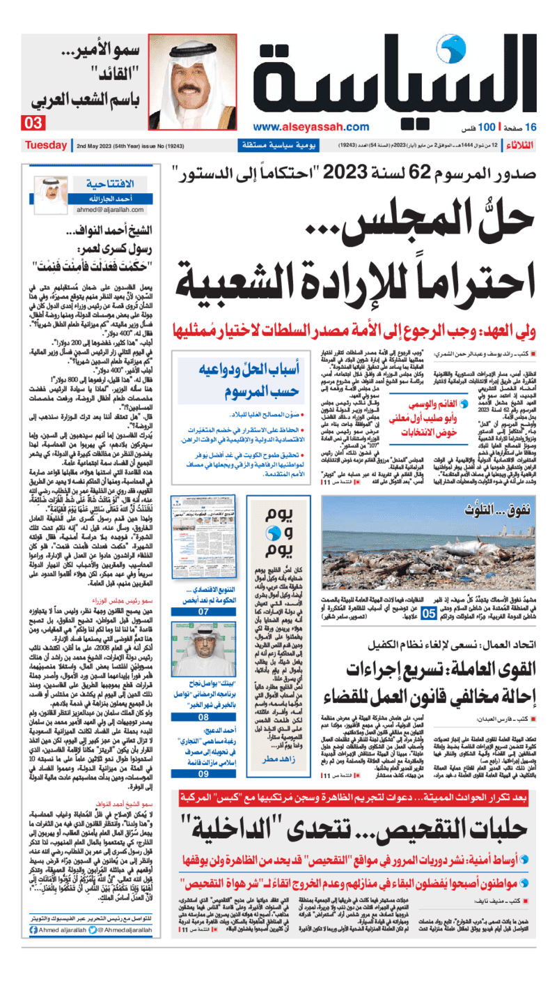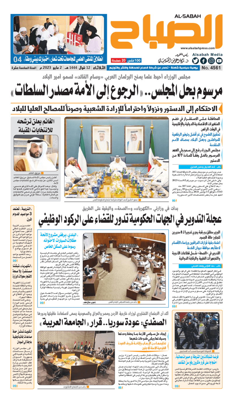 آخر الأخبار جرائم وقضايا “الجمارك” تضبط 29 ألف علبة مشروبات كحولية قادمة من دولة آسيوية في ميناء الشويخ 9 يونيو، 2024 محليات ممثلة عن دولة الكويت الطبيبة الكويتية أسماء الكندري تشارك في المؤتمر العالمي للمناظير في إيطاليا 8 يونيو، 2024 محليات “الصحة”: اكتمال وصول فريق الخدمات الطبية ببعثة الحج الكويتية لمكة المكرمة 8 يونيو، 2024 محليات “الصحة” تحدد 8 مراكز للصحة المدرسية لاستقبال الطلبة المبتعثين 8 يونيو، 2024 عربي وعالمي “الصحة العالمية”: تسجيل أول وفاة لشخص مصاب بـ«أنفلونزا الطيور» 7 يونيو، 2024 محليات عناوين الصحف الكويتية ليوم الثلاثاء 02 مايو 2023 محرر المحليات2 مايو، 2023أضف تعليق1 دقائق جريدة الأنباء جريدة القبس جريدة السياسة جريدة الوطن جريدة الصباح الوسومTop عناوين الصحف المحلية من الممكن أن يعجبك جرائم وقضايا “الجمارك” تضبط 29 ألف علبة مشروبات كحولية قادمة من دولة آسيوية في ميناء الشويخ محليات ممثلة عن دولة الكويت الطبيبة الكويتية أسماء الكندري تشارك في المؤتمر العالمي للمناظير في إيطاليا محليات “الصحة”: اكتمال وصول فريق الخدمات الطبية ببعثة الحج الكويتية لمكة المكرمة محليات “الصحة” تحدد 8 مراكز للصحة المدرسية لاستقبال الطلبة المبتعثين عربي وعالمي “الصحة العالمية”: تسجيل أول وفاة لشخص مصاب بـ«أنفلونزا الطيور» تكنولوجيا رش السحب بملح البحر.. تجربة “ثورية” لتبريد كوكب الأرض أضف تعليق أضغط هنا لإضافة تعليق إلغاء الردالتعليقالاسم البريد الإلكتروني الموقع الإلكتروني Δ هذا الموقع يستخدم خدمة أكيسميت للتقليل من البريد المزعجة. اعرف المزيد عن كيفية التعامل مع بيانات التعليقات الخاصة بك processed.