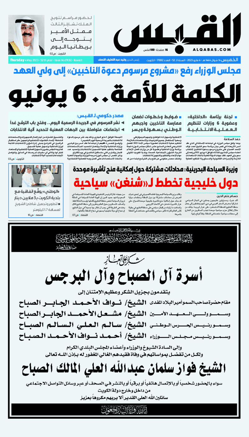 آخر الأخبار جرائم وقضايا “الجمارك” تضبط 29 ألف علبة مشروبات كحولية قادمة من دولة آسيوية في ميناء الشويخ 9 يونيو، 2024 محليات ممثلة عن دولة الكويت الطبيبة الكويتية أسماء الكندري تشارك في المؤتمر العالمي للمناظير في إيطاليا 8 يونيو، 2024 محليات “الصحة”: اكتمال وصول فريق الخدمات الطبية ببعثة الحج الكويتية لمكة المكرمة 8 يونيو، 2024 محليات “الصحة” تحدد 8 مراكز للصحة المدرسية لاستقبال الطلبة المبتعثين 8 يونيو، 2024 عربي وعالمي “الصحة العالمية”: تسجيل أول وفاة لشخص مصاب بـ«أنفلونزا الطيور» 7 يونيو، 2024 محليات عناوين الصحف الكويتية ليوم الخميس 04 مايو 2023 محرر المحليات4 مايو، 2023أضف تعليق1 دقائق جريدة القبس جريدة السياسة جريدة الوطن جريدة الصباح الوسومTop عناوين الصحف المحلية من الممكن أن يعجبك جرائم وقضايا “الجمارك” تضبط 29 ألف علبة مشروبات كحولية قادمة من دولة آسيوية في ميناء الشويخ محليات ممثلة عن دولة الكويت الطبيبة الكويتية أسماء الكندري تشارك في المؤتمر العالمي للمناظير في إيطاليا محليات “الصحة”: اكتمال وصول فريق الخدمات الطبية ببعثة الحج الكويتية لمكة المكرمة محليات “الصحة” تحدد 8 مراكز للصحة المدرسية لاستقبال الطلبة المبتعثين عربي وعالمي “الصحة العالمية”: تسجيل أول وفاة لشخص مصاب بـ«أنفلونزا الطيور» تكنولوجيا رش السحب بملح البحر.. تجربة “ثورية” لتبريد كوكب الأرض أضف تعليق أضغط هنا لإضافة تعليق إلغاء الردالتعليقالاسم البريد الإلكتروني الموقع الإلكتروني Δ هذا الموقع يستخدم خدمة أكيسميت للتقليل من البريد المزعجة. اعرف المزيد عن كيفية التعامل مع بيانات التعليقات الخاصة بك processed.