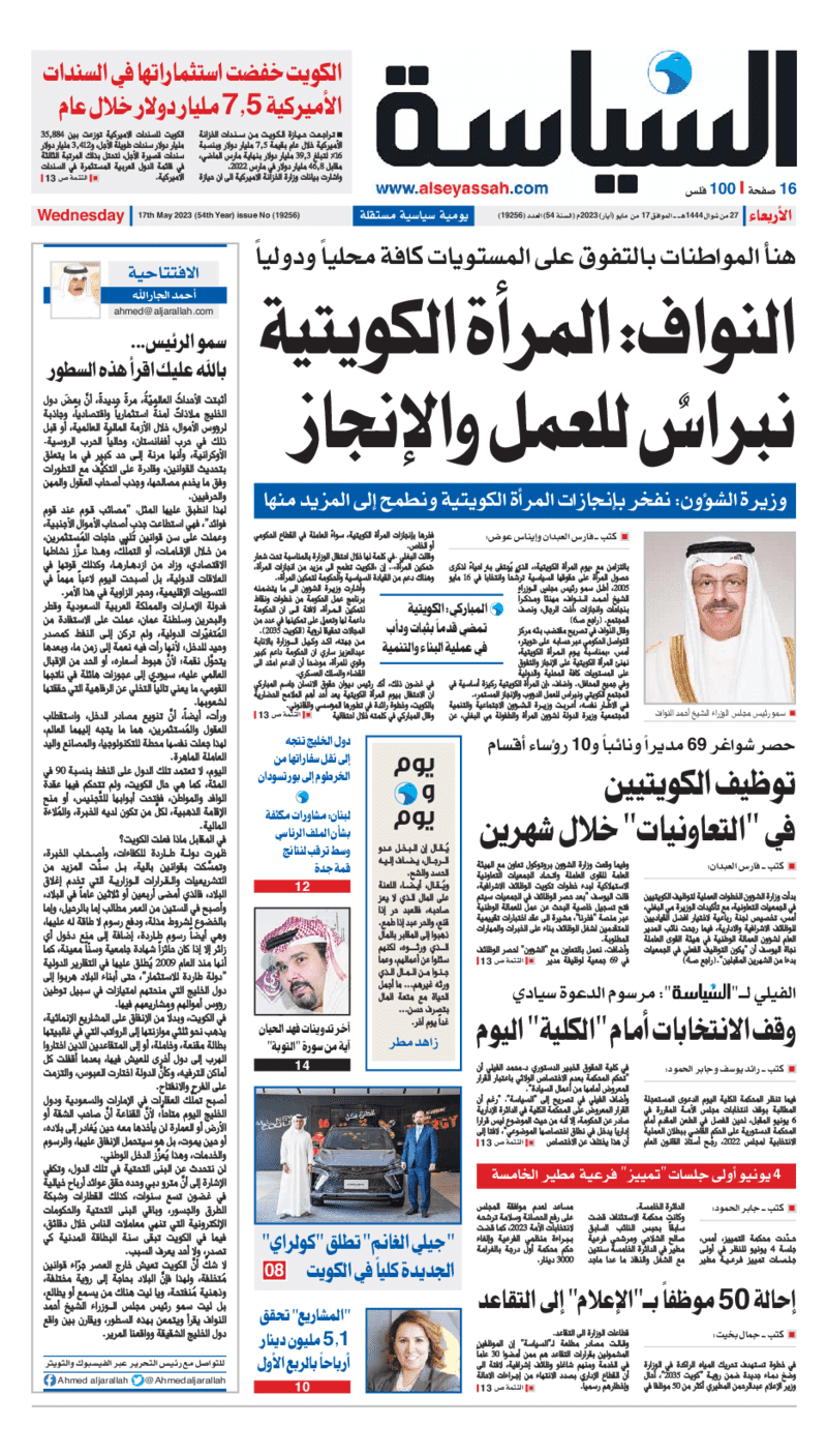 آخر الأخبار جرائم وقضايا “الجمارك” تضبط 29 ألف علبة مشروبات كحولية قادمة من دولة آسيوية في ميناء الشويخ 9 يونيو، 2024 محليات ممثلة عن دولة الكويت الطبيبة الكويتية أسماء الكندري تشارك في المؤتمر العالمي للمناظير في إيطاليا 8 يونيو، 2024 محليات “الصحة”: اكتمال وصول فريق الخدمات الطبية ببعثة الحج الكويتية لمكة المكرمة 8 يونيو، 2024 محليات “الصحة” تحدد 8 مراكز للصحة المدرسية لاستقبال الطلبة المبتعثين 8 يونيو، 2024 عربي وعالمي “الصحة العالمية”: تسجيل أول وفاة لشخص مصاب بـ«أنفلونزا الطيور» 7 يونيو، 2024 محليات عناوين الصحف الكويتية ليوم الأربعاء 17 مايو 2023 محرر المحليات17 مايو، 2023أضف تعليق1 دقائق جريدة الأنباء جريدة القبس جريدة السياسة جريدة الوطن جريدة الصباح الوسومTop عناوين الصحف المحلية من الممكن أن يعجبك جرائم وقضايا “الجمارك” تضبط 29 ألف علبة مشروبات كحولية قادمة من دولة آسيوية في ميناء الشويخ محليات ممثلة عن دولة الكويت الطبيبة الكويتية أسماء الكندري تشارك في المؤتمر العالمي للمناظير في إيطاليا محليات “الصحة”: اكتمال وصول فريق الخدمات الطبية ببعثة الحج الكويتية لمكة المكرمة محليات “الصحة” تحدد 8 مراكز للصحة المدرسية لاستقبال الطلبة المبتعثين عربي وعالمي “الصحة العالمية”: تسجيل أول وفاة لشخص مصاب بـ«أنفلونزا الطيور» تكنولوجيا رش السحب بملح البحر.. تجربة “ثورية” لتبريد كوكب الأرض أضف تعليق أضغط هنا لإضافة تعليق إلغاء الردالتعليقالاسم البريد الإلكتروني الموقع الإلكتروني Δ هذا الموقع يستخدم خدمة أكيسميت للتقليل من البريد المزعجة. اعرف المزيد عن كيفية التعامل مع بيانات التعليقات الخاصة بك processed.