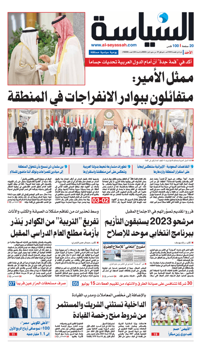 آخر الأخبار جرائم وقضايا “الجمارك” تضبط 29 ألف علبة مشروبات كحولية قادمة من دولة آسيوية في ميناء الشويخ 9 يونيو، 2024 محليات ممثلة عن دولة الكويت الطبيبة الكويتية أسماء الكندري تشارك في المؤتمر العالمي للمناظير في إيطاليا 8 يونيو، 2024 محليات “الصحة”: اكتمال وصول فريق الخدمات الطبية ببعثة الحج الكويتية لمكة المكرمة 8 يونيو، 2024 محليات “الصحة” تحدد 8 مراكز للصحة المدرسية لاستقبال الطلبة المبتعثين 8 يونيو، 2024 عربي وعالمي “الصحة العالمية”: تسجيل أول وفاة لشخص مصاب بـ«أنفلونزا الطيور» 7 يونيو، 2024 محليات عناوين الصحف الكويتية ليوم الأحد 21 مايو 2023 محرر المحليات21 مايو، 2023أضف تعليق1 دقائق جريدة الأنباء جريدة القبس جريدة السياسة جريدة الوطن جريدة الصباح الوسومTop عناوين الصحف المحلية من الممكن أن يعجبك جرائم وقضايا “الجمارك” تضبط 29 ألف علبة مشروبات كحولية قادمة من دولة آسيوية في ميناء الشويخ محليات ممثلة عن دولة الكويت الطبيبة الكويتية أسماء الكندري تشارك في المؤتمر العالمي للمناظير في إيطاليا محليات “الصحة”: اكتمال وصول فريق الخدمات الطبية ببعثة الحج الكويتية لمكة المكرمة محليات “الصحة” تحدد 8 مراكز للصحة المدرسية لاستقبال الطلبة المبتعثين عربي وعالمي “الصحة العالمية”: تسجيل أول وفاة لشخص مصاب بـ«أنفلونزا الطيور» تكنولوجيا رش السحب بملح البحر.. تجربة “ثورية” لتبريد كوكب الأرض أضف تعليق أضغط هنا لإضافة تعليق إلغاء الردالتعليقالاسم البريد الإلكتروني الموقع الإلكتروني Δ هذا الموقع يستخدم خدمة أكيسميت للتقليل من البريد المزعجة. اعرف المزيد عن كيفية التعامل مع بيانات التعليقات الخاصة بك processed.
