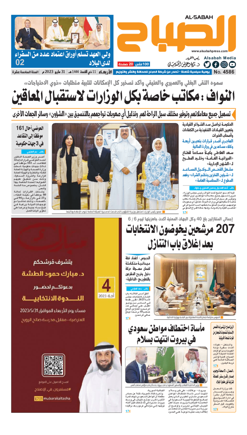 آخر الأخبار جرائم وقضايا “الجمارك” تضبط 29 ألف علبة مشروبات كحولية قادمة من دولة آسيوية في ميناء الشويخ 9 يونيو، 2024 محليات ممثلة عن دولة الكويت الطبيبة الكويتية أسماء الكندري تشارك في المؤتمر العالمي للمناظير في إيطاليا 8 يونيو، 2024 محليات “الصحة”: اكتمال وصول فريق الخدمات الطبية ببعثة الحج الكويتية لمكة المكرمة 8 يونيو، 2024 محليات “الصحة” تحدد 8 مراكز للصحة المدرسية لاستقبال الطلبة المبتعثين 8 يونيو، 2024 عربي وعالمي “الصحة العالمية”: تسجيل أول وفاة لشخص مصاب بـ«أنفلونزا الطيور» 7 يونيو، 2024 محليات عناوين الصحف الكويتية ليوم الأربعاء 31 مايو 2023 محرر المحليات31 مايو، 2023أضف تعليق1 دقائق جريدة الأنباء جريدة القبس جريدة السياسة جريدة الوطن جريدة الصباح الوسومTop عناوين الصحف المحلية من الممكن أن يعجبك جرائم وقضايا “الجمارك” تضبط 29 ألف علبة مشروبات كحولية قادمة من دولة آسيوية في ميناء الشويخ محليات ممثلة عن دولة الكويت الطبيبة الكويتية أسماء الكندري تشارك في المؤتمر العالمي للمناظير في إيطاليا محليات “الصحة”: اكتمال وصول فريق الخدمات الطبية ببعثة الحج الكويتية لمكة المكرمة محليات “الصحة” تحدد 8 مراكز للصحة المدرسية لاستقبال الطلبة المبتعثين عربي وعالمي “الصحة العالمية”: تسجيل أول وفاة لشخص مصاب بـ«أنفلونزا الطيور» تكنولوجيا رش السحب بملح البحر.. تجربة “ثورية” لتبريد كوكب الأرض أضف تعليق أضغط هنا لإضافة تعليق إلغاء الردالتعليقالاسم البريد الإلكتروني الموقع الإلكتروني Δ هذا الموقع يستخدم خدمة أكيسميت للتقليل من البريد المزعجة. اعرف المزيد عن كيفية التعامل مع بيانات التعليقات الخاصة بك processed.