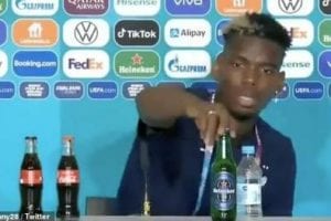 أزال لاعب كرة القدم بول بوغبا زجاجة تحتوي على مشروب كحولي من صنع شركة «هاينكن» كانت موضوعة أمامه في مؤتمر صحافي خاص ببطولة كأس الأمم الأوروبية...