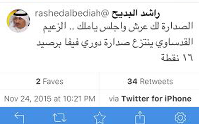 في بادرة وفاء نادرة، بارك المدرب الوطني راشد البديح بفوز القادسية في اول مباراة بعد ابتعاده عن تدريب الفريق. ويذكر بأن الملكي تمكن من التغلب على نظيره السالمية...