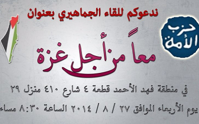 يقيم حزب الأمة لقاء جماهيريا تحت عنوان “معا من أجل غزة”، وذلك يوم غد الأربعاء الساعة 8:30 مساء في ديوان الأمين العام سيف الهاجري في منطقة فهد...