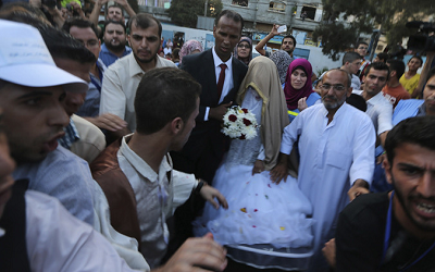 قررت الأمم المتحدة منح العروسين الفلسطينيين عمر وهبة من غزة فترة راحة من سفك الدماء والقذائف بدفع تكاليف الزفاف في مدرسة تابعة للأمم المتحدة. جاءت مساعدة...