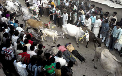 يقدم الفلاحون الهنود من طائفة الهندوس على طقس غريب، حيث يرقدون على الأرض كي تدهسهم الأبقار المندفعة، معتقدين أن ذلك يجلب لهم الحظ. ...
