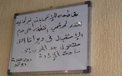 قدّم ديوان السلامة (في منطقة الجهراء) اعتذار مهذباً إلى مرشحي مجلس الأمة، ضمنه امتناعه عن استقبالهم. ووضع أصحاب الديوان (الذي قرر مقاطعة الانتخابات) لافتة...