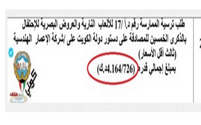 كشف مغرد يكتب في تويتر باسم “كويتي منتف” عن الفائز بمناقصة الالعاب النارية التي أضاءت سماء شارع الخليج بشكل غير مسبوق في العالم والتي...