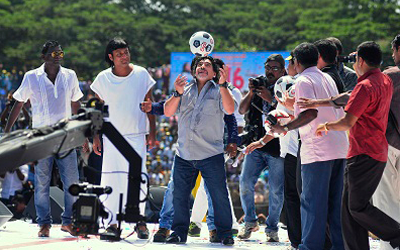 أسعد أسطورة كرة القدم الأرجنتيني، دييغو مارادونا، الآلاف من مشجعي كرة القدم في جنوب الهند، اليوم، حيث استعرض مهاراته الكروية وردد الأغاني ورقص مع الجماهير...