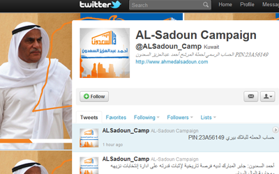دشن النائب السابق “أحمد السعدون” حملته الانتخابية عبر حساب مخصص للحملة على تويتر.. وعنوانه ALSadoun_Camp@. واستهل القائمون على الحساب الحملة...