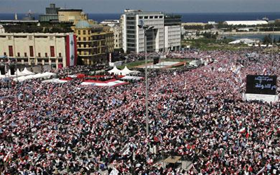 تحت شعار “خريف السلاح، ربيع الاستقلال” احتشد عشرات الألوف من أنصار المعارضة في لبنان اليوم، في مهرجان هاجم خلاله الخطباء “النظام...