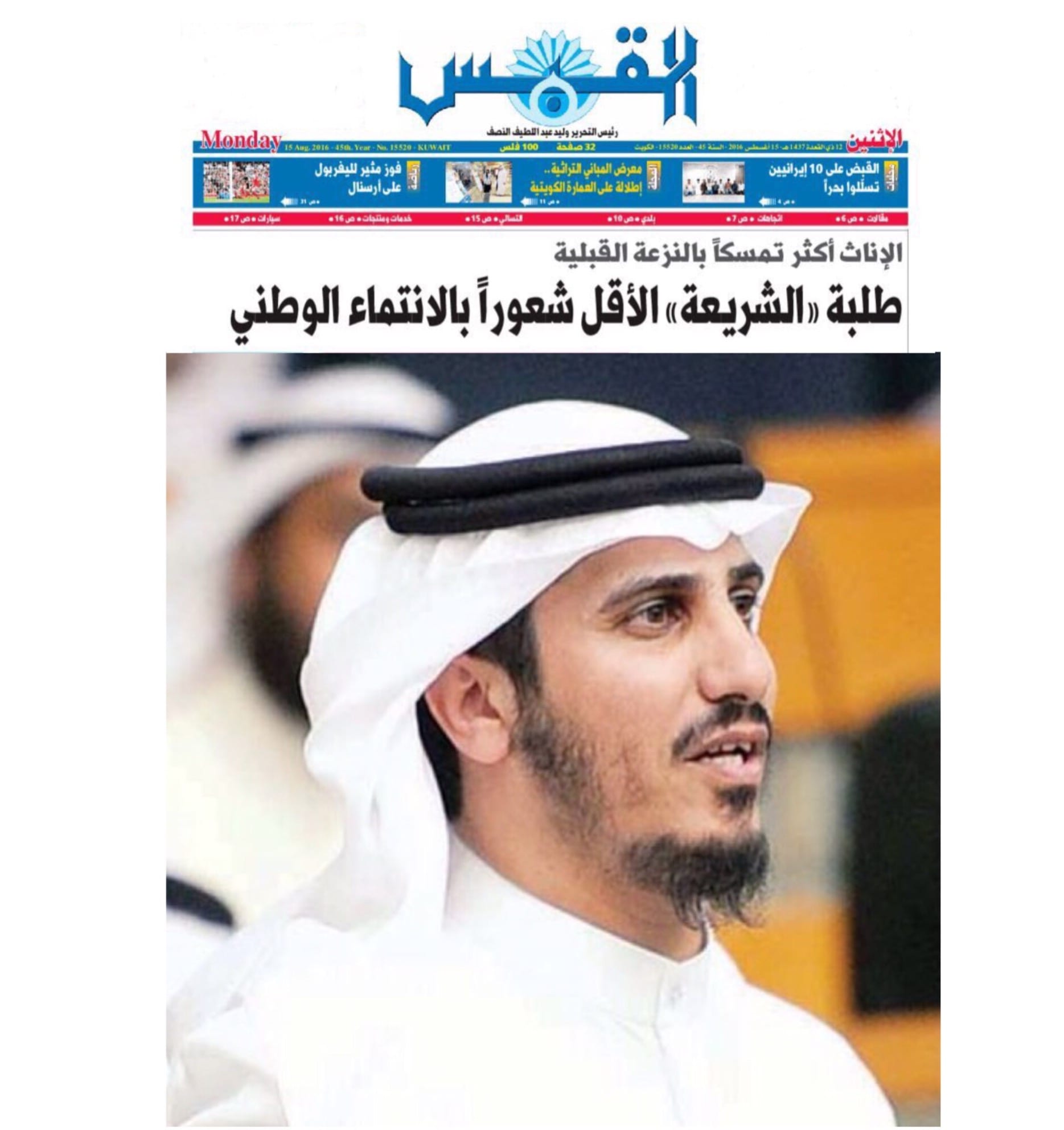 قرأت في جريدة القبس عنوانا بالخط العريض في الصفحة الأولى لفت نظري وهو (طلبة الشريعة الأقل شعوراً بالأنتماء الوطني)، وإذا هذا العنوان التي وضعته القبس في الصفحة...
