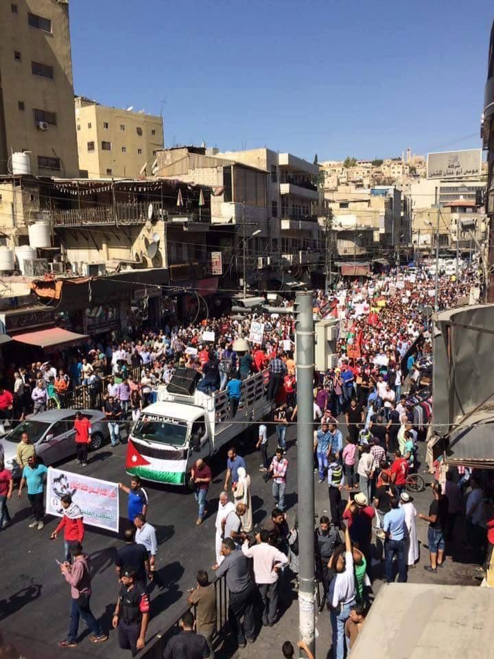 صورة وقصة| مسيرة في العاصمة الأردنية عمّان ضد اتفاقية الغاز التي وقعتها بلادهم مع الاحتلال الاسرائيلي