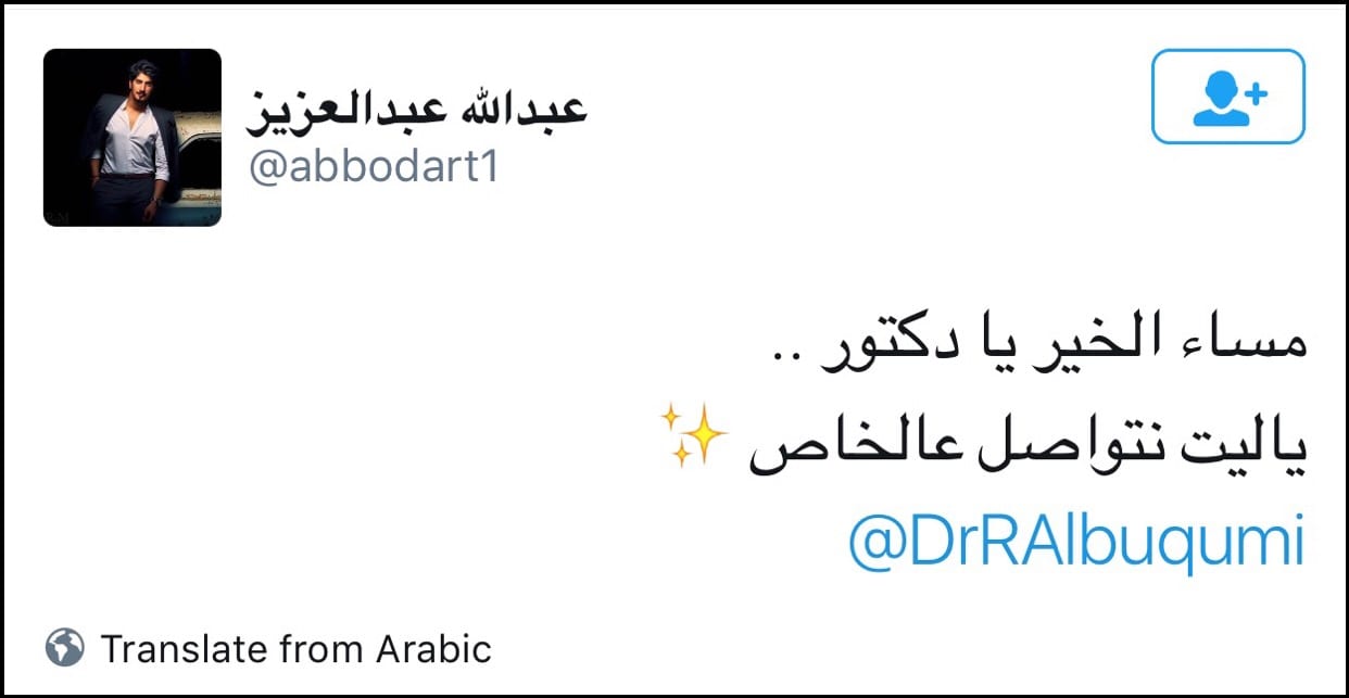 أثارت تغريدة للفنان السعردي الشاب عبدالله عبدالعزيز قلق جمهوره عليه بعد أن طلب من طبيب الجلدية المعروف د.رياض البقمي مراسلته على الخاص. ولم يتضح بعد سبب هذه...