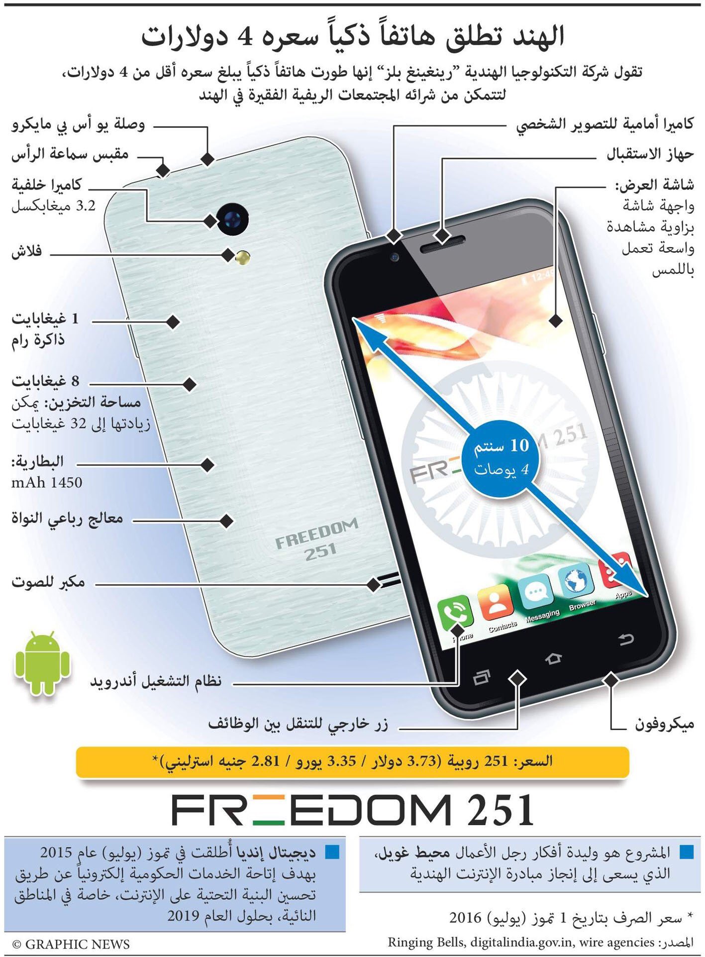 انفوجرافيك: الهند تطلق هاتفاً ذكياً سعره 4 دولارات.(وكالات)