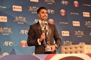 فاز اللاعب السعودي سالم الدوسري اليوم الثلاثاء بجائزة أفضل لاعب في آسيا وذلك خلال حفل توزيع جوائز الاتحاد الآسيوي لكرة القدم السنوية لعام 2022 والمقام في...