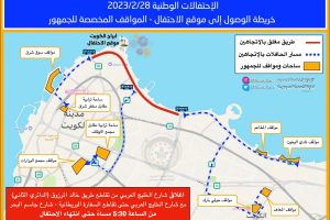 قالت وزارة الداخلية اليوم الثلاثاء ان حافلات نقل الجمهور من المواقف المحددة للتجمع إلى موقع الإحتفال لمشاهدة الألعاب النارية تنطلق في الساعة 30ر2 ظهرا وحتى...