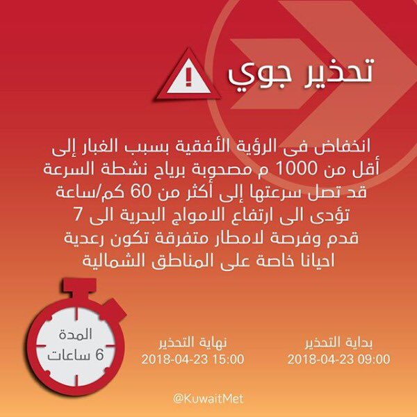 توقعت إدارة الأرصاد الجوية أن يترسب الغبار تدريجيا والرياح شمالية غربية خفيفة إلى معتدلة السرعة تنشط على فترات 15 – 42 كم/ساعة مع فرصة لأمطار متفرقة تكون...