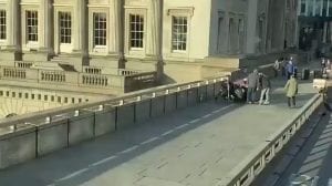 فيديو سبر #فيديو| لحظة إطلاق النار على مشتبه به بالإعتداء على المارّة بسكين قرب جسر #لندن 29 نوفمبر، 2019