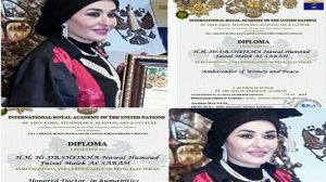 مجتمع مجتمع / الأكاديمية الملكية الدولية في الأمم المتحدة تمنح نوال الحمود الدكتوراه الفخرية 22 يوليو، 2016